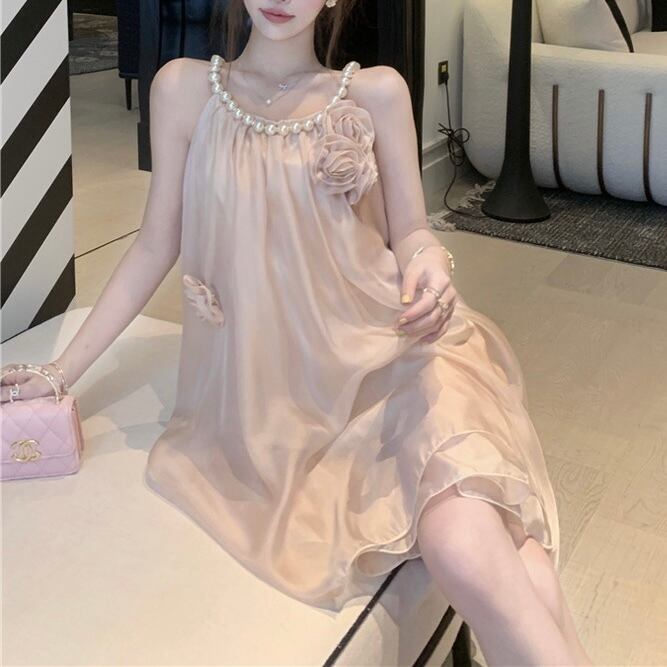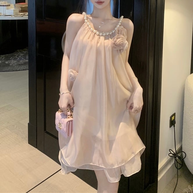 【dress】パールホルターネックミニワンピース3色 HX8223