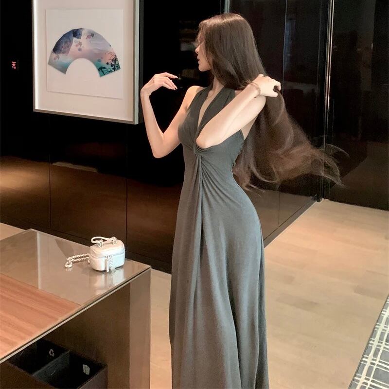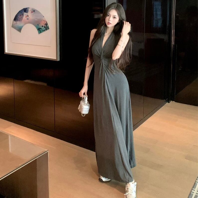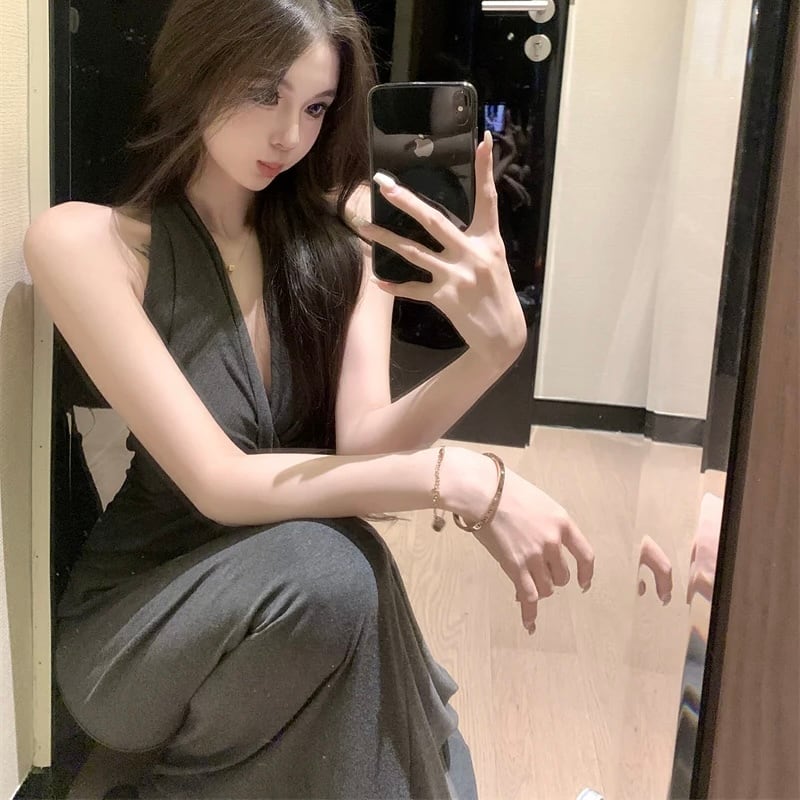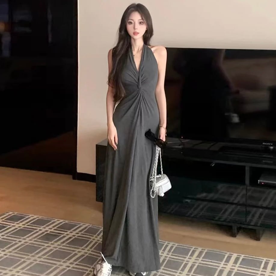 【dress】Vネックホルターネックワンピース2色 MA0140