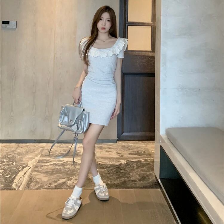 【dress】半袖フリルタイトミニワンピース MA0141