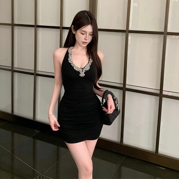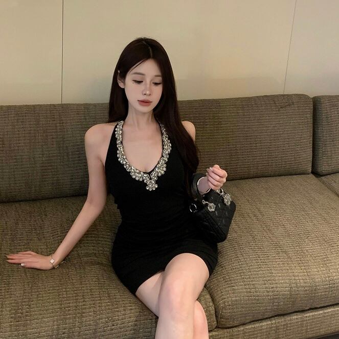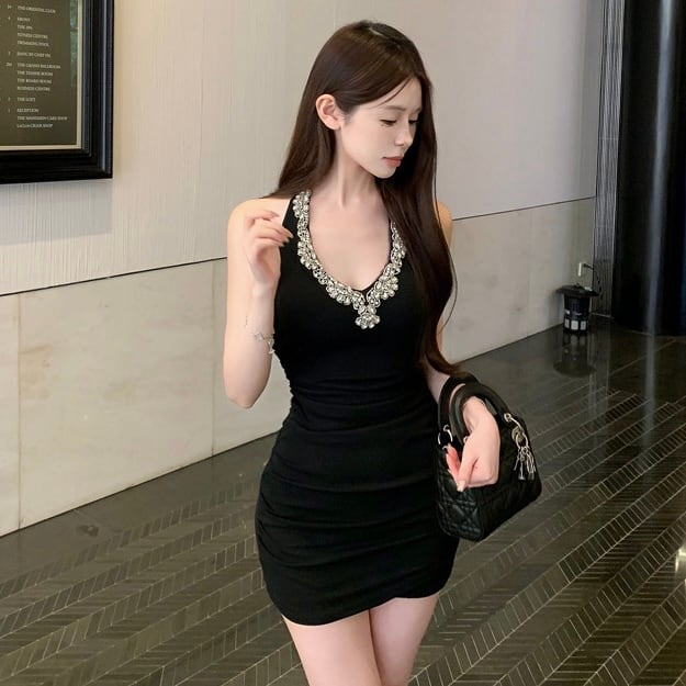 【dress】ビジュー付きタイトワンピース MA0148