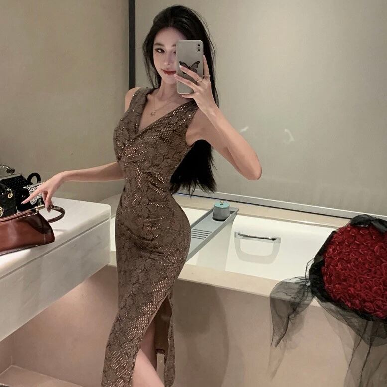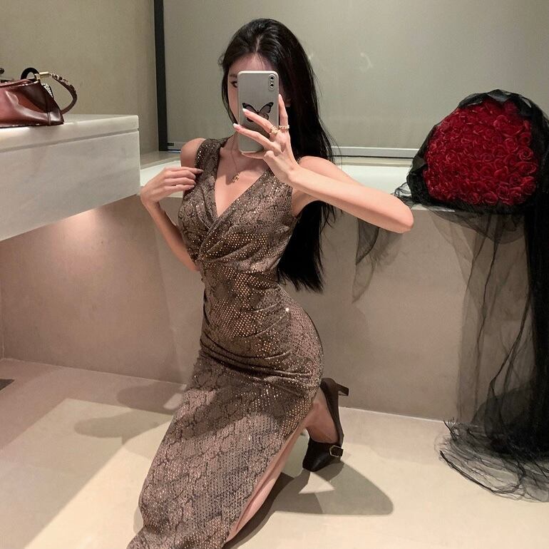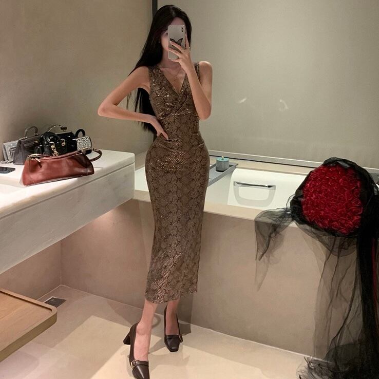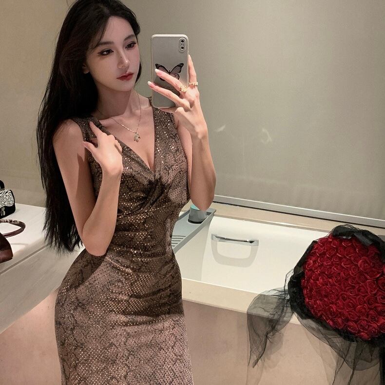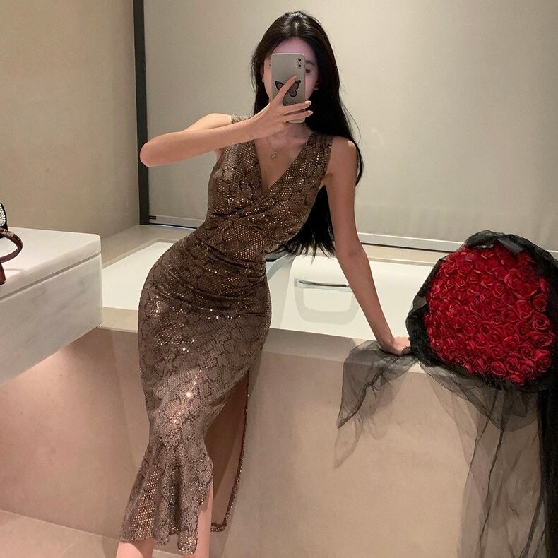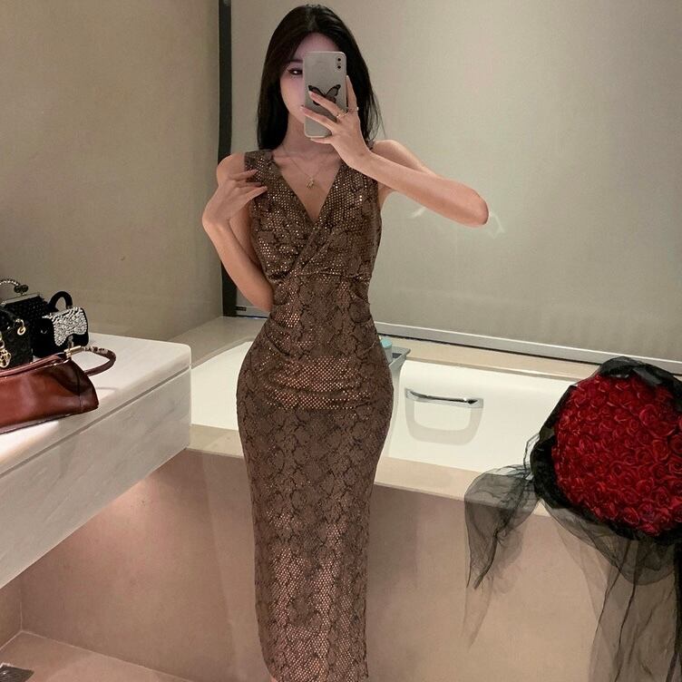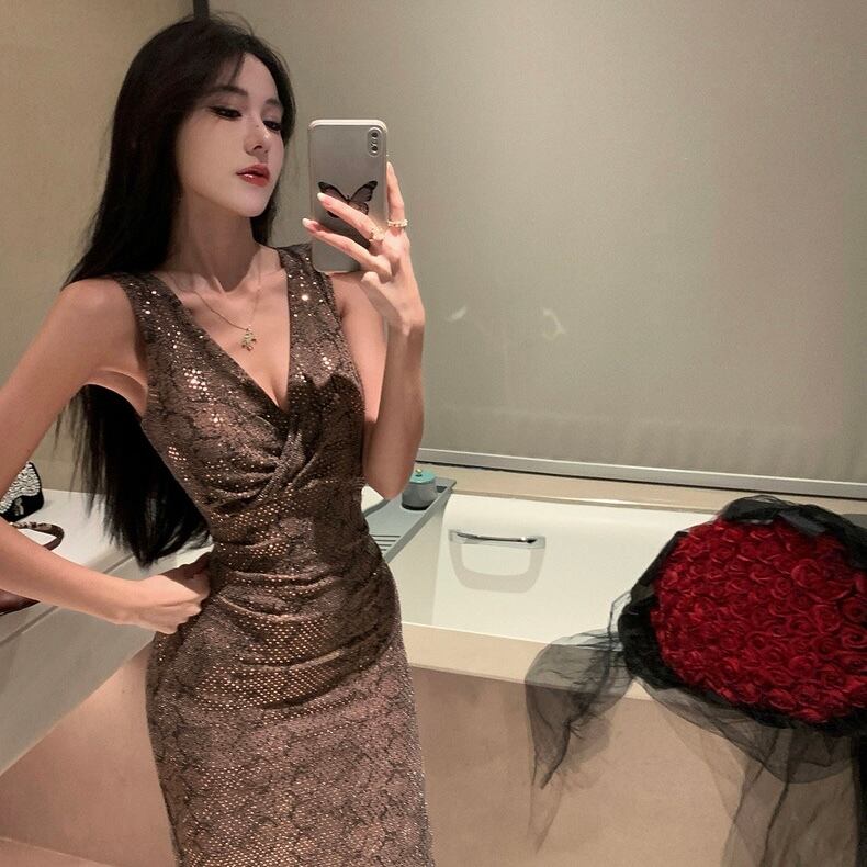 【dress】Vネックスパンコールタイトワンピース MA0156