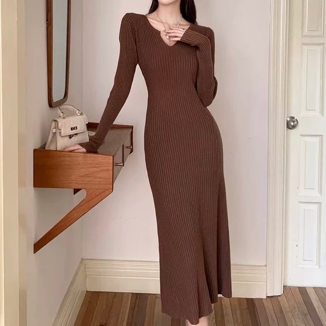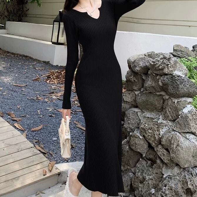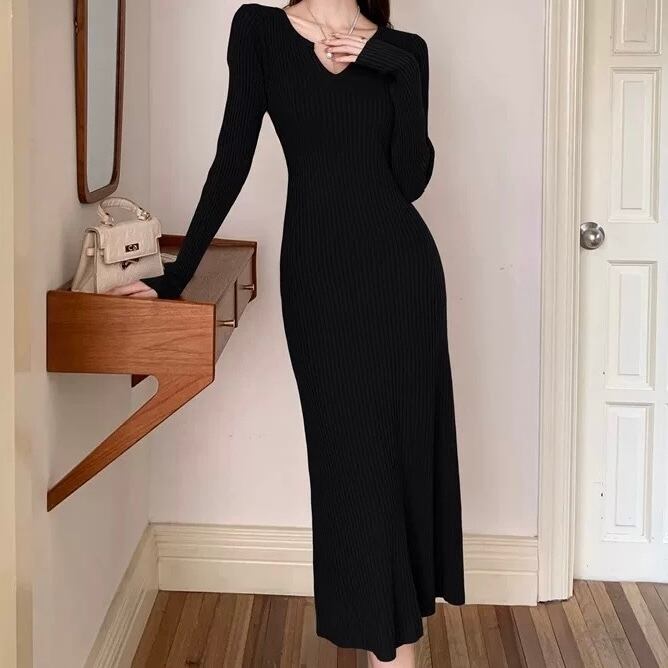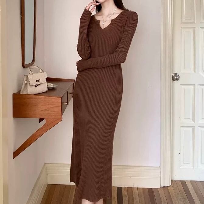 【dress】ニットタイトワンピース2色 MA0159