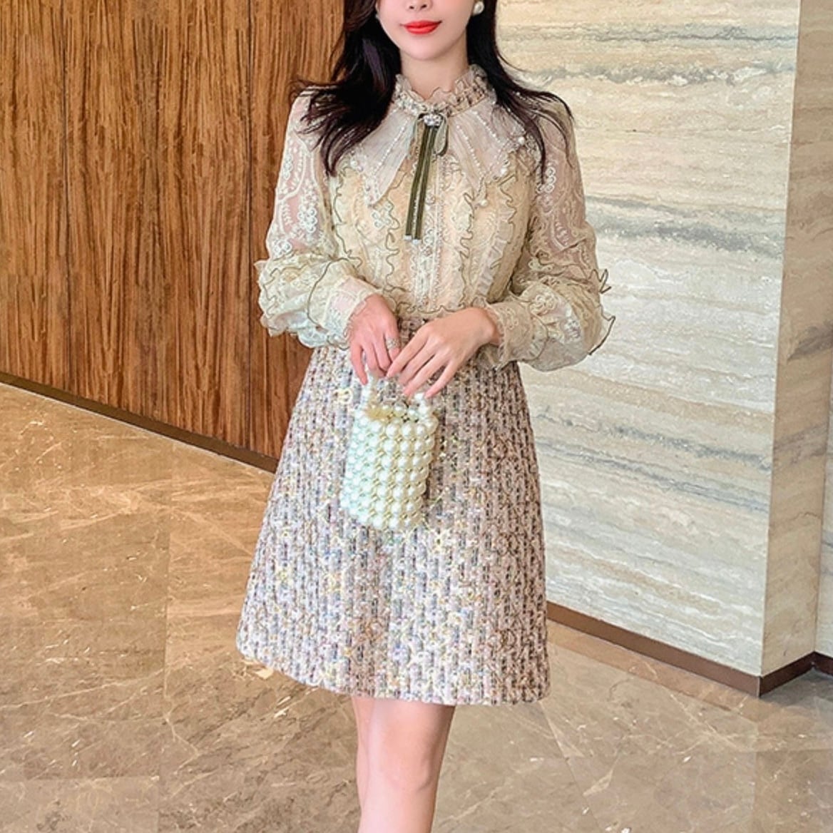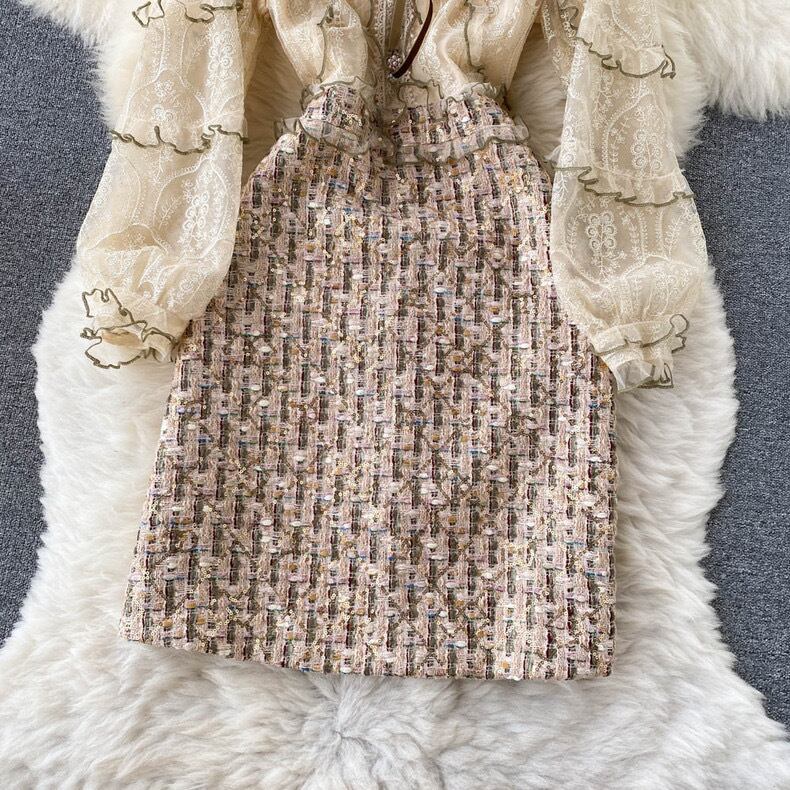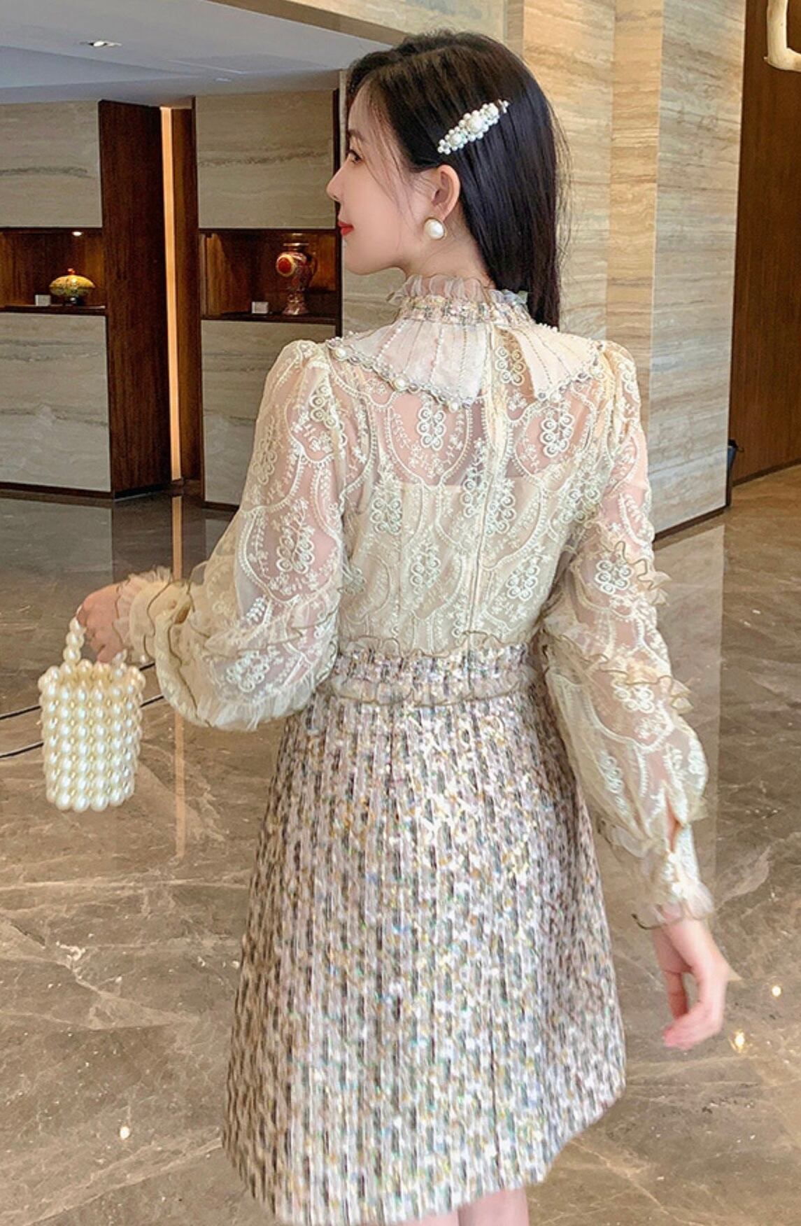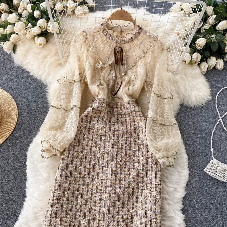 【dress】S〜2XLビジュー付きエレガントワンピース3色 RY9317