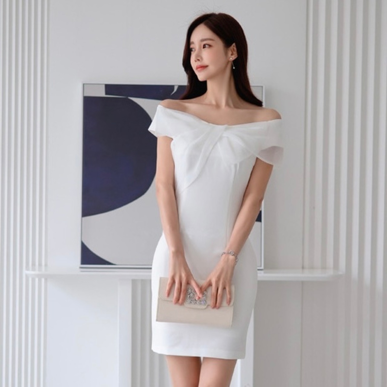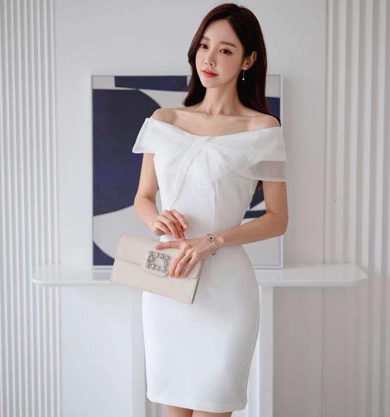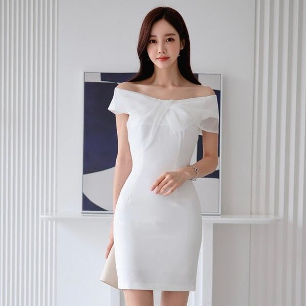 【dress】オフショルダーリボンワンピース MA0168