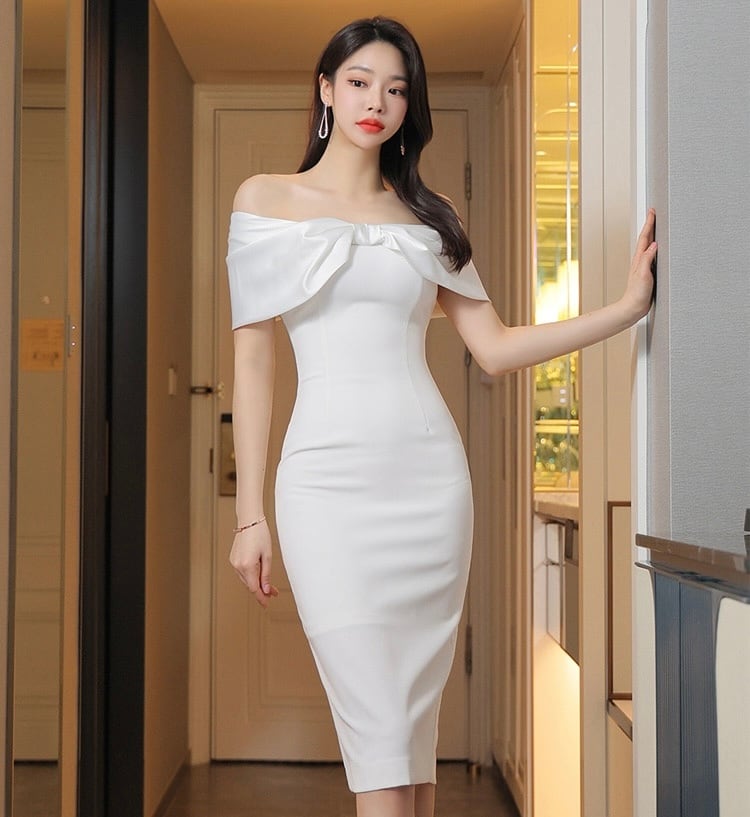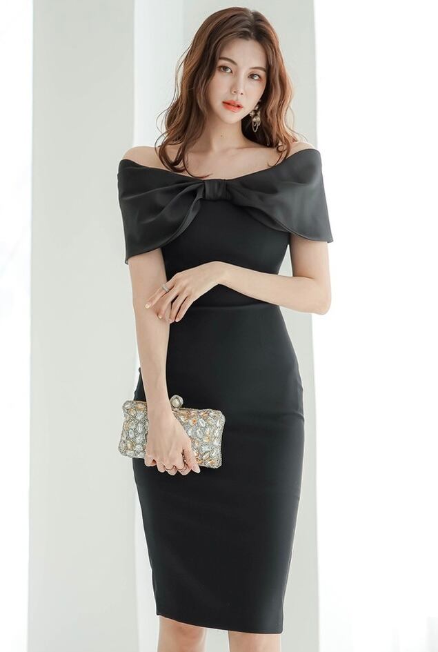 【dress】オフショルダービッグリボンワンピース2色 MA0169