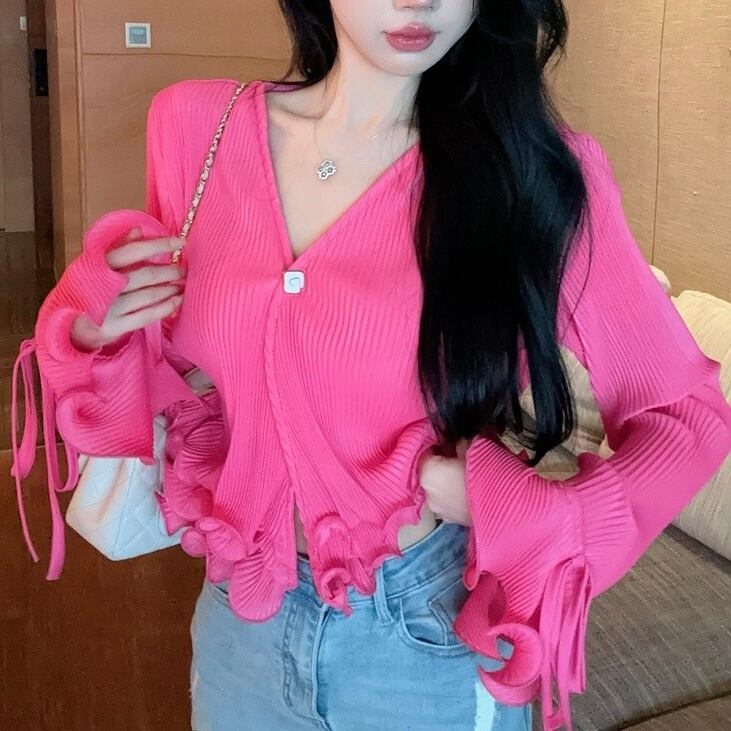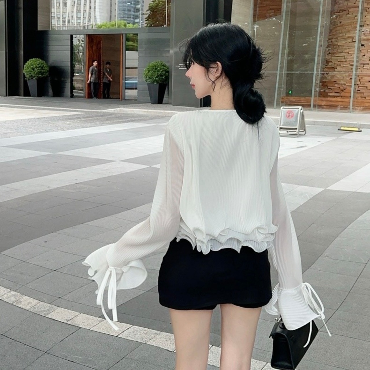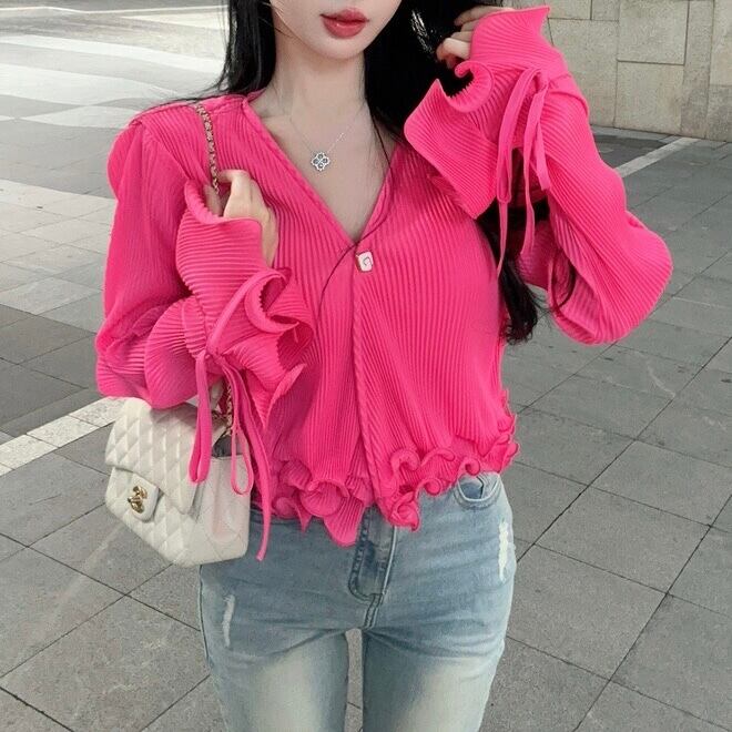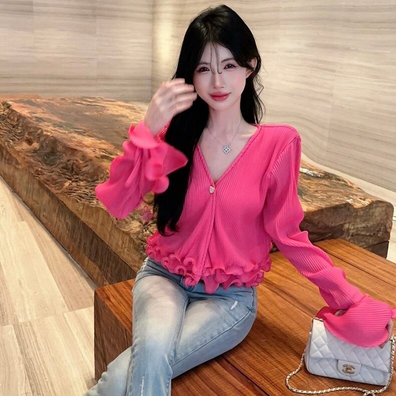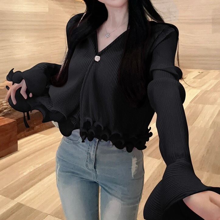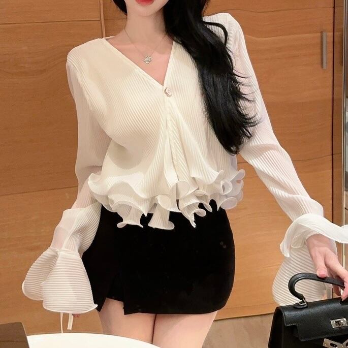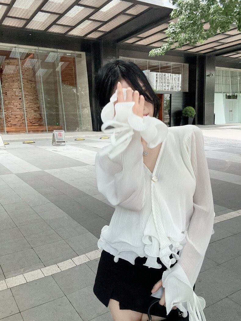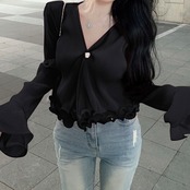 【tops】Vネックフリルシャツブラウス3色 TN9503