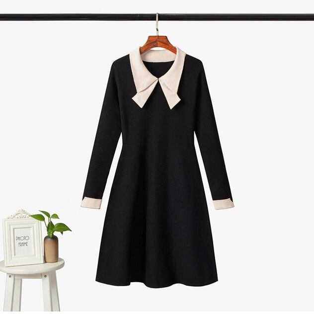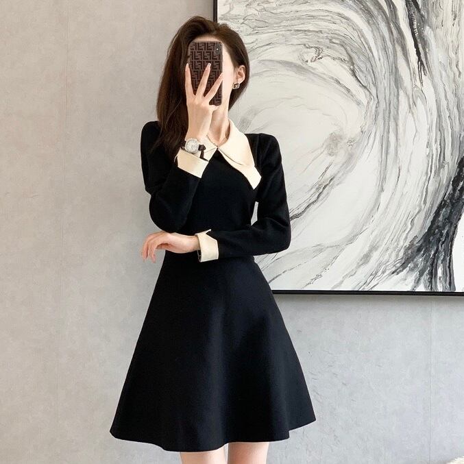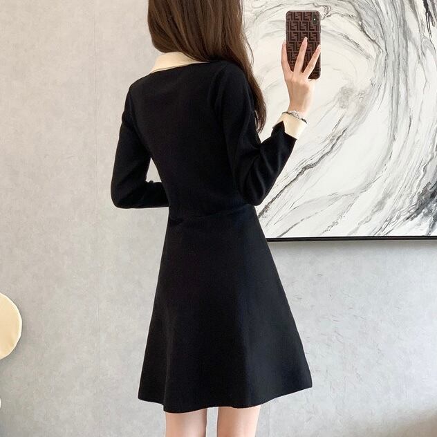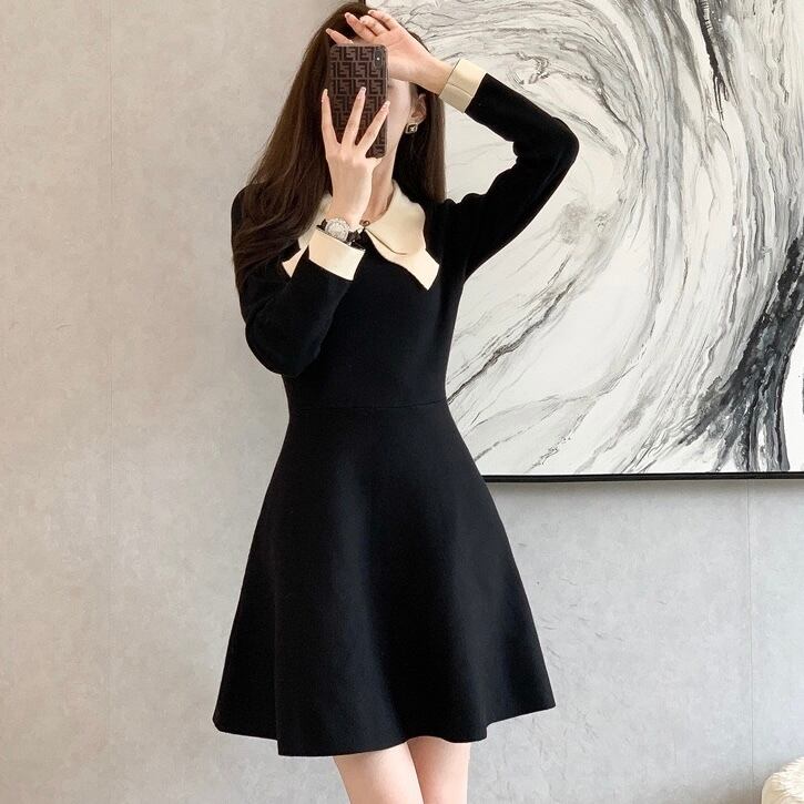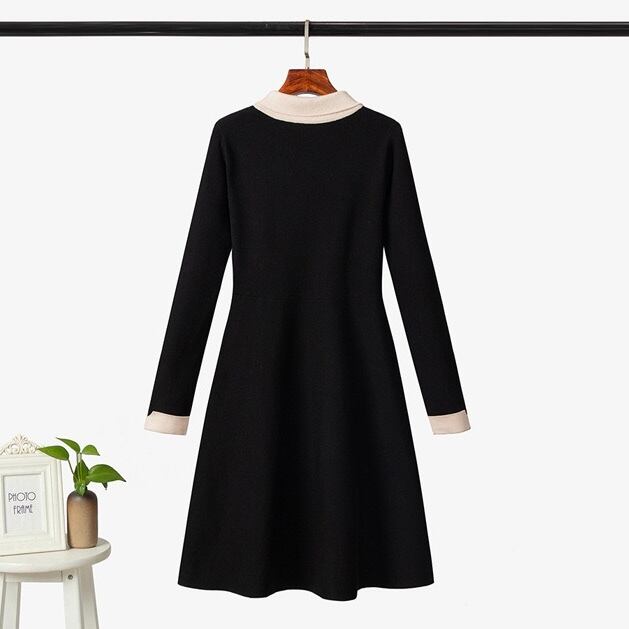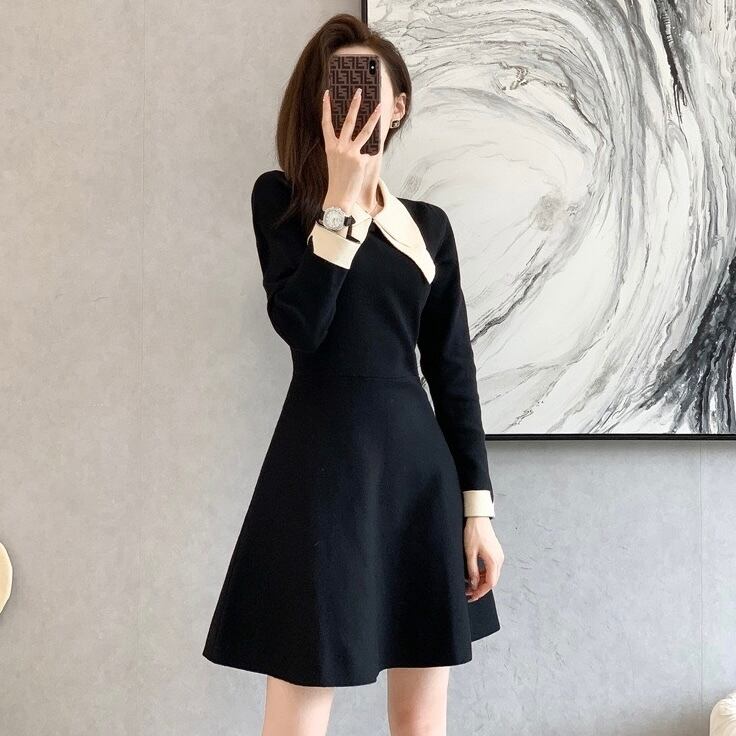 【dress】配色Aラインニットワンピース IR9517