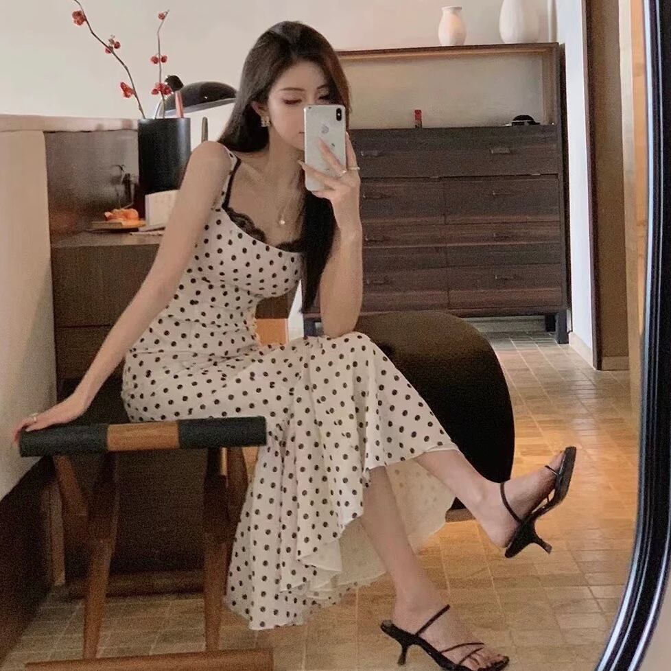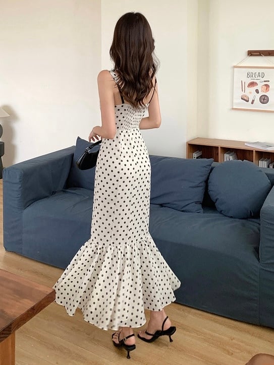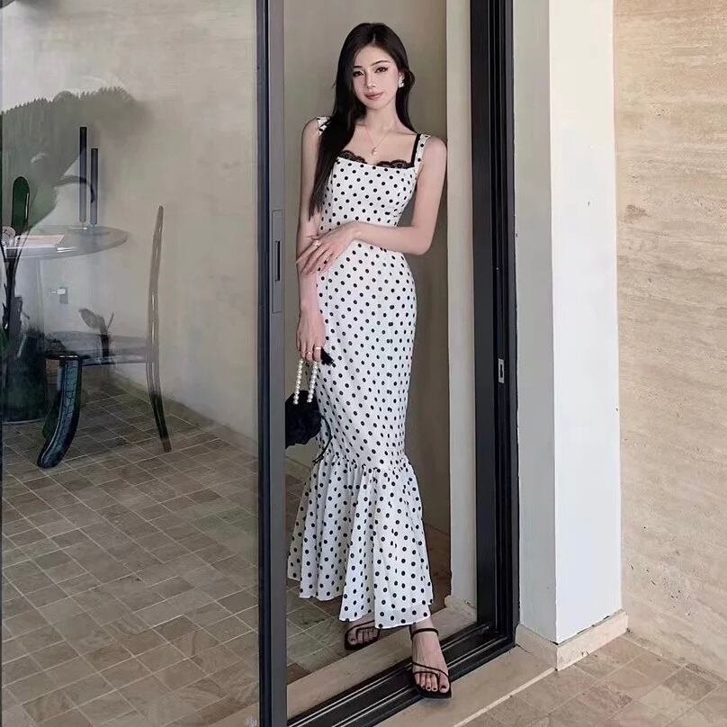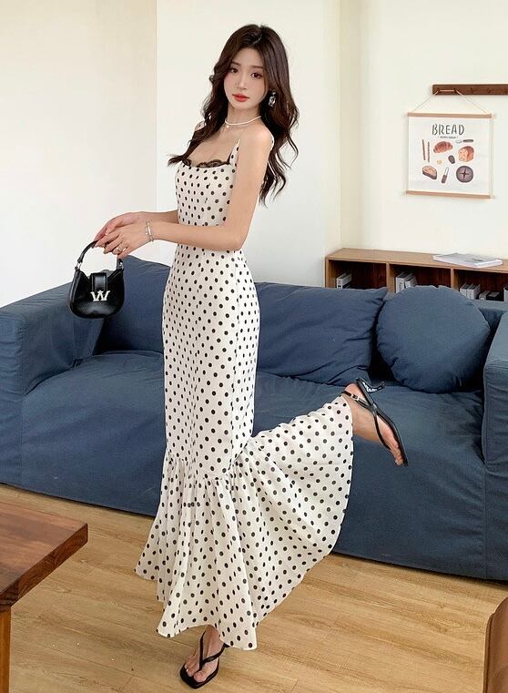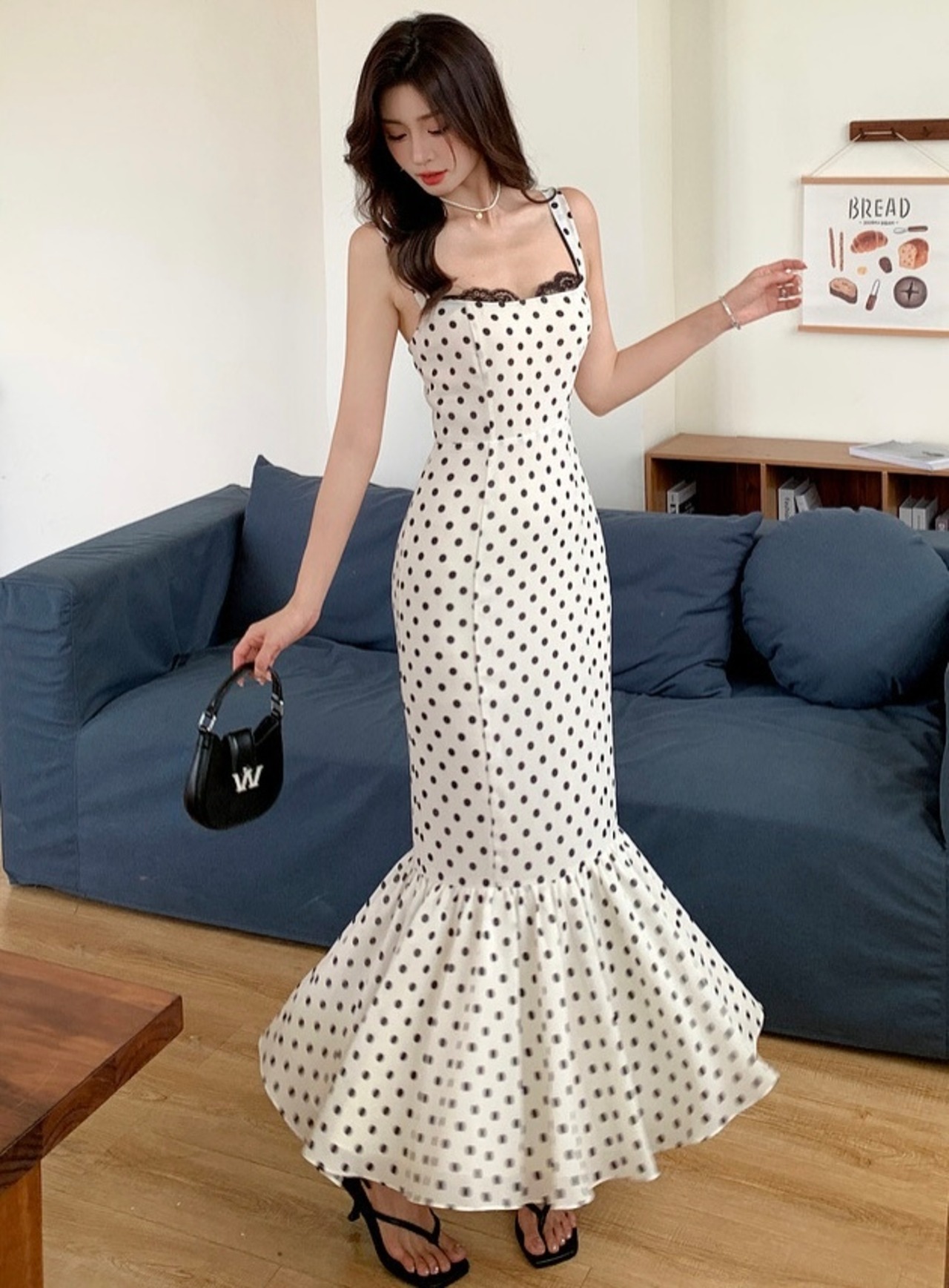 【dress】レースドット柄マーメイドキャミワンピース MA0178