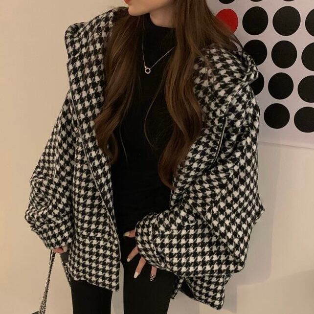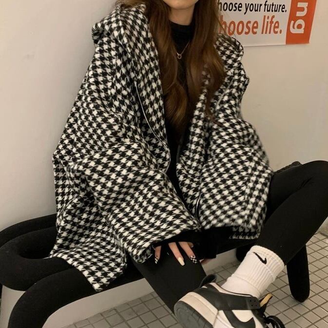 【outer】 厚手ルーズ千鳥格子アウター MA0197