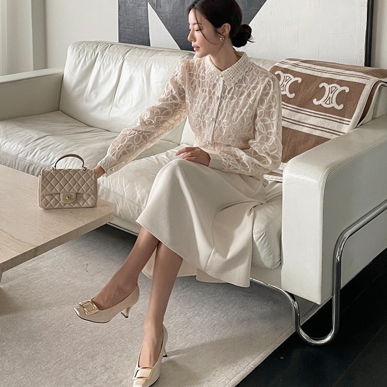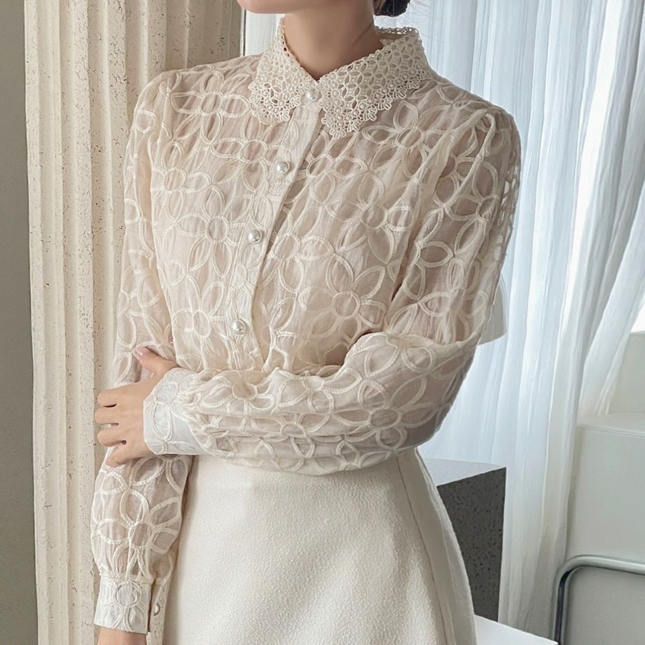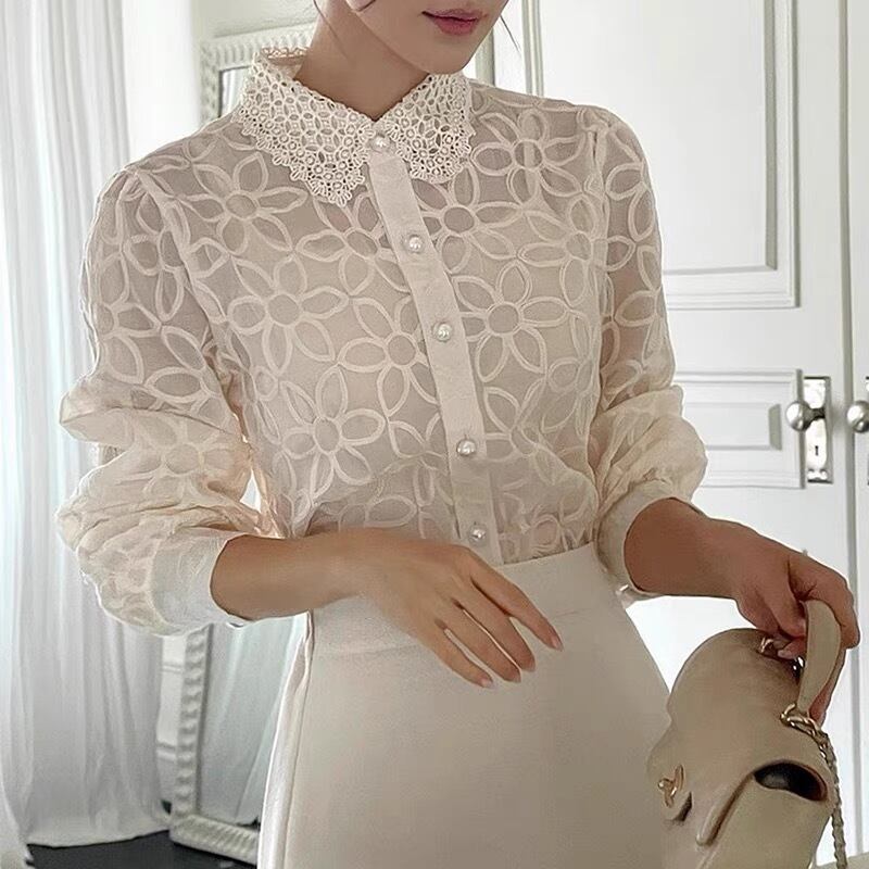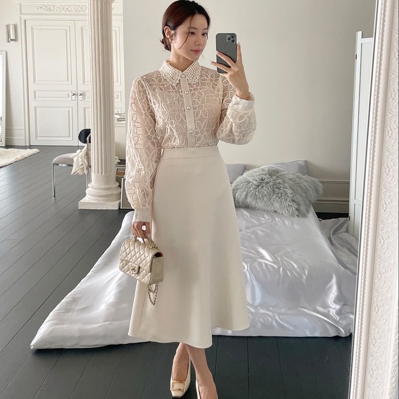 【set】キャミソールインナーxレース刺繍シャツ3色 RR9900