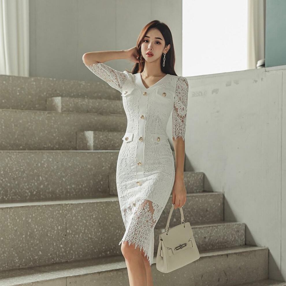 【dress】レースVネックドレスワンピース SY9902