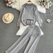 【set】ニットトップスxワイドパンツ7色 MY9103