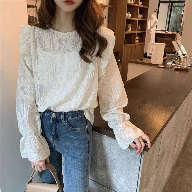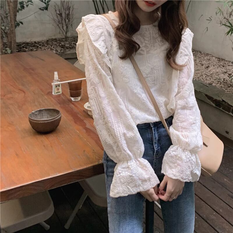 【tops】フリルレーストランペットスリーブ MA0202