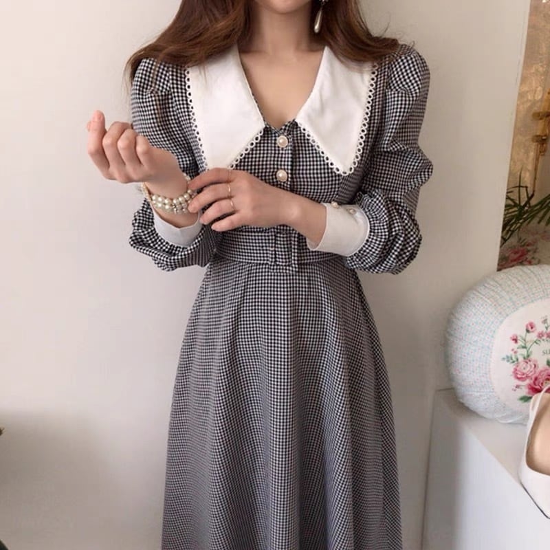 【dress】ベルト付きチェック柄ワンピース RR9120