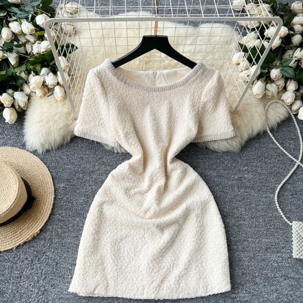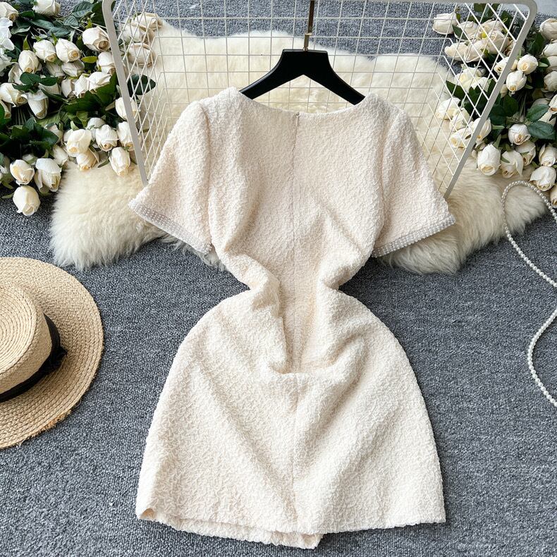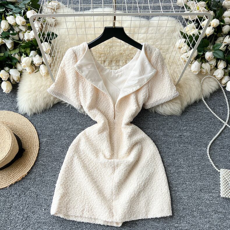 【dress】S〜2XLビジュー付きエレガントミニワンピース RY9126