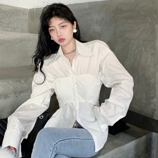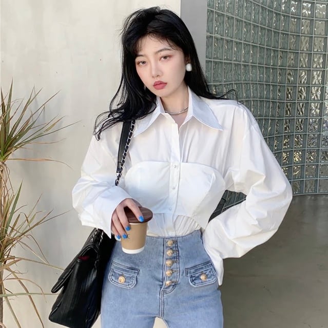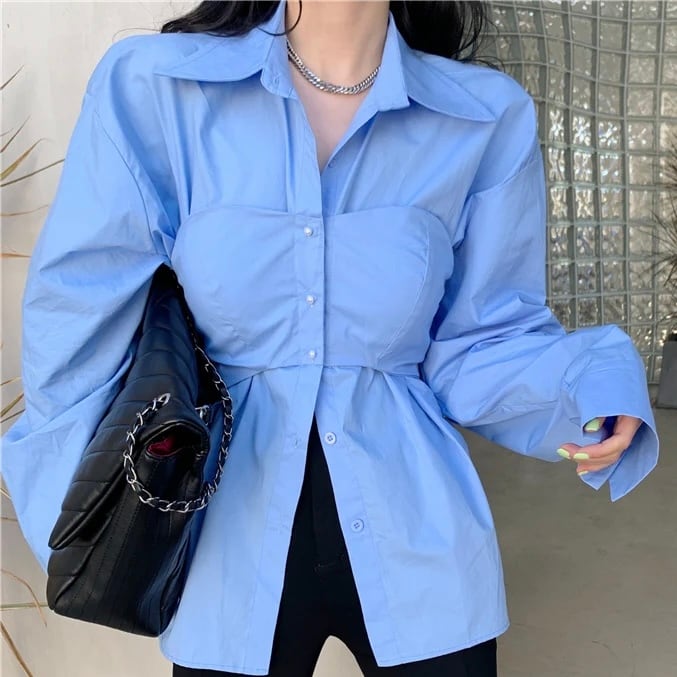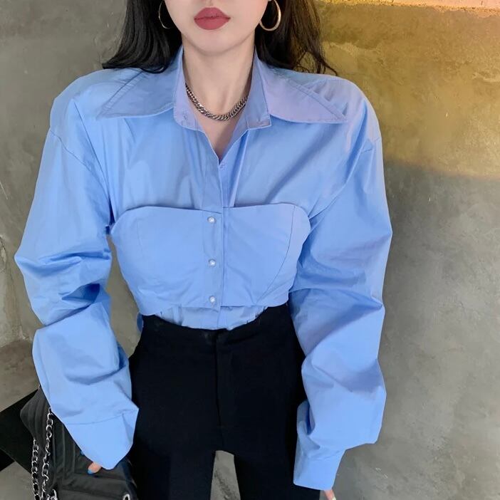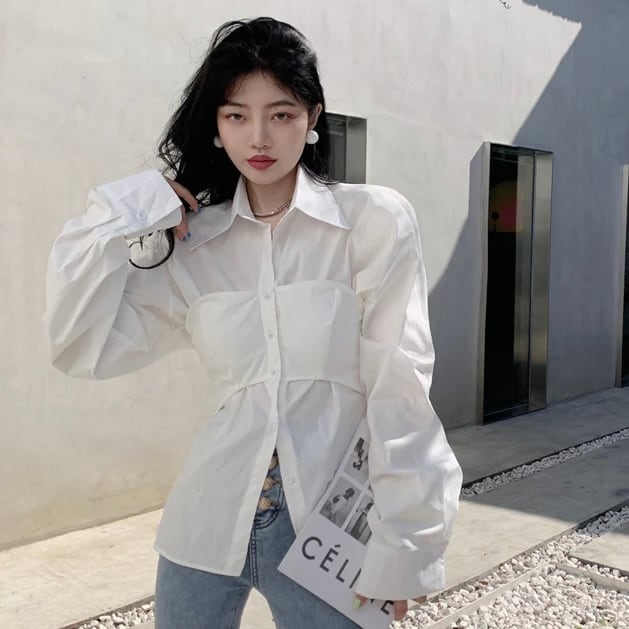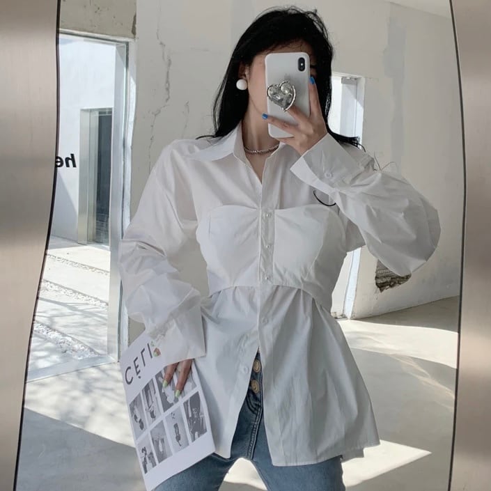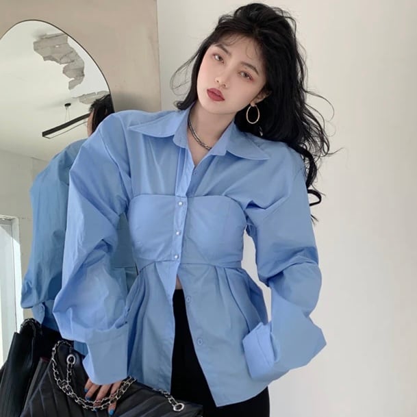 【tops】ビスチェ風長袖シャツ2色 MA0224