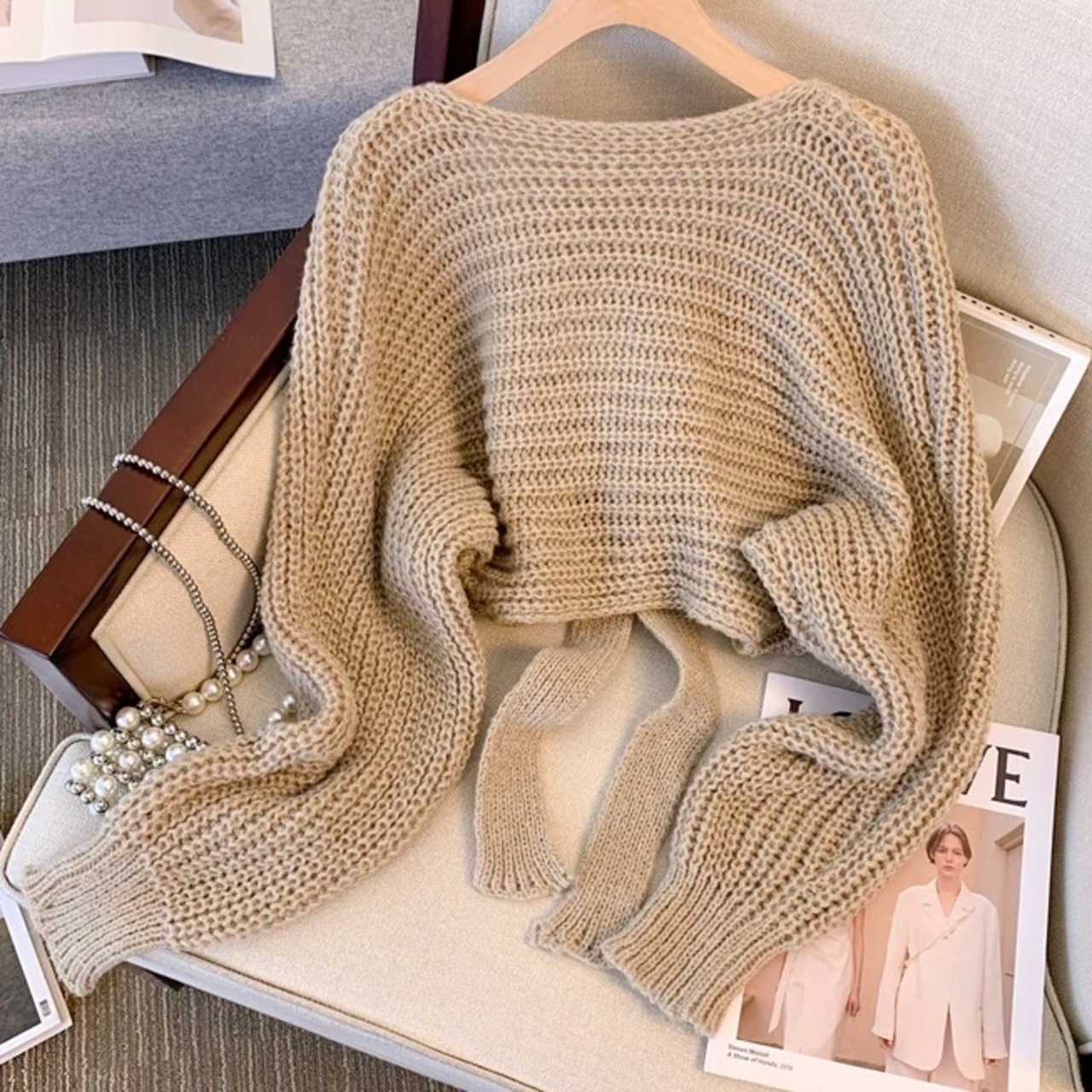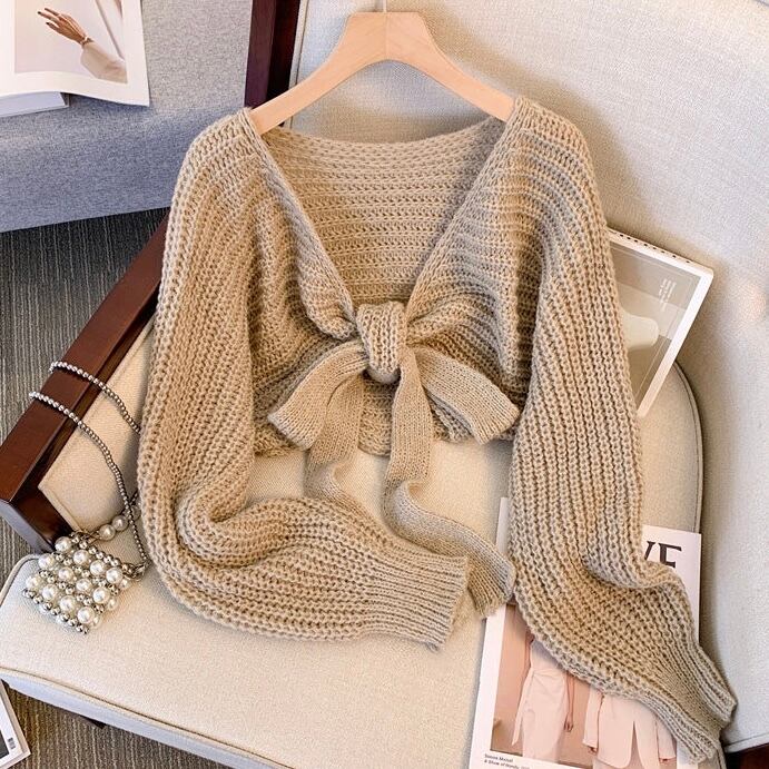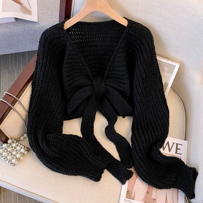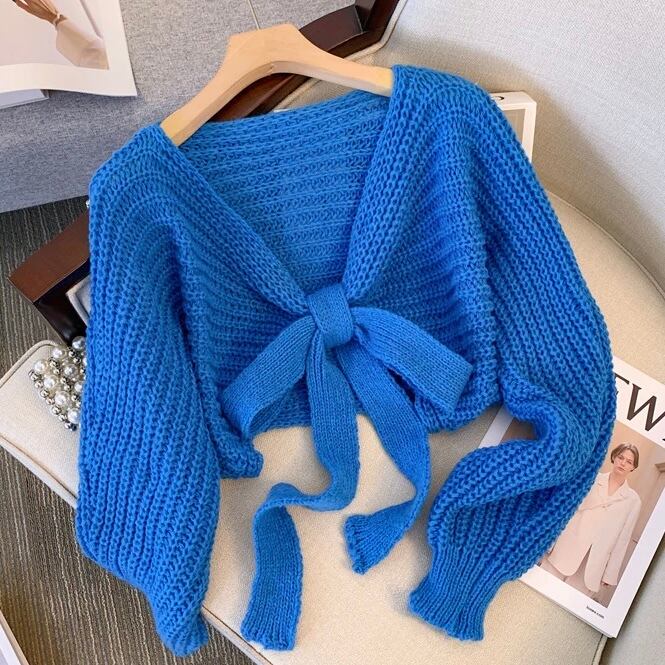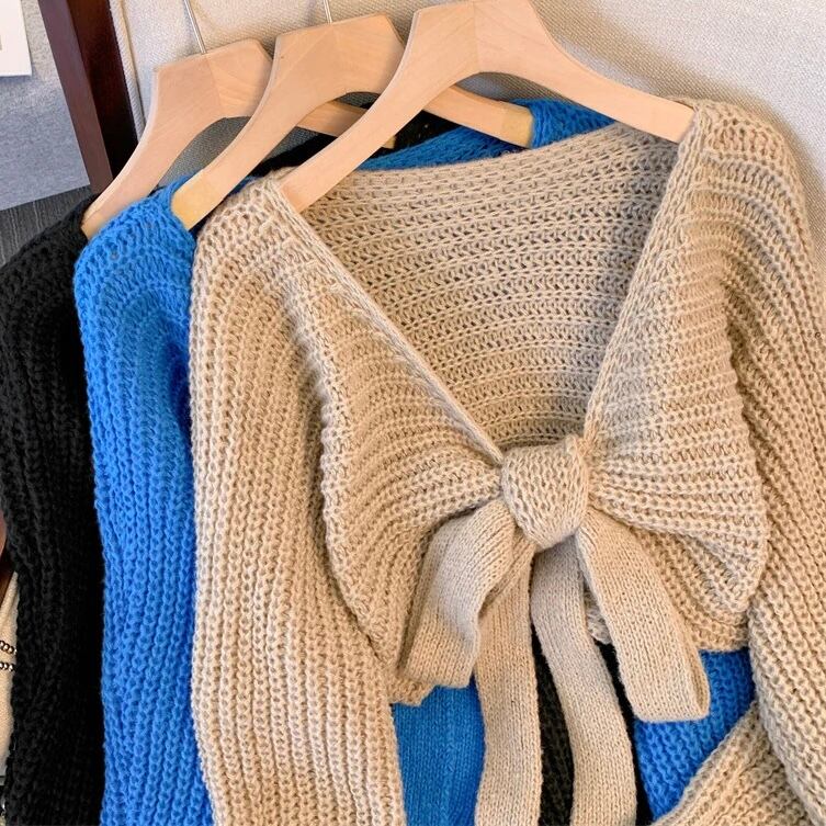 【tops】リボン長袖ニットセーター 3色 MA0226