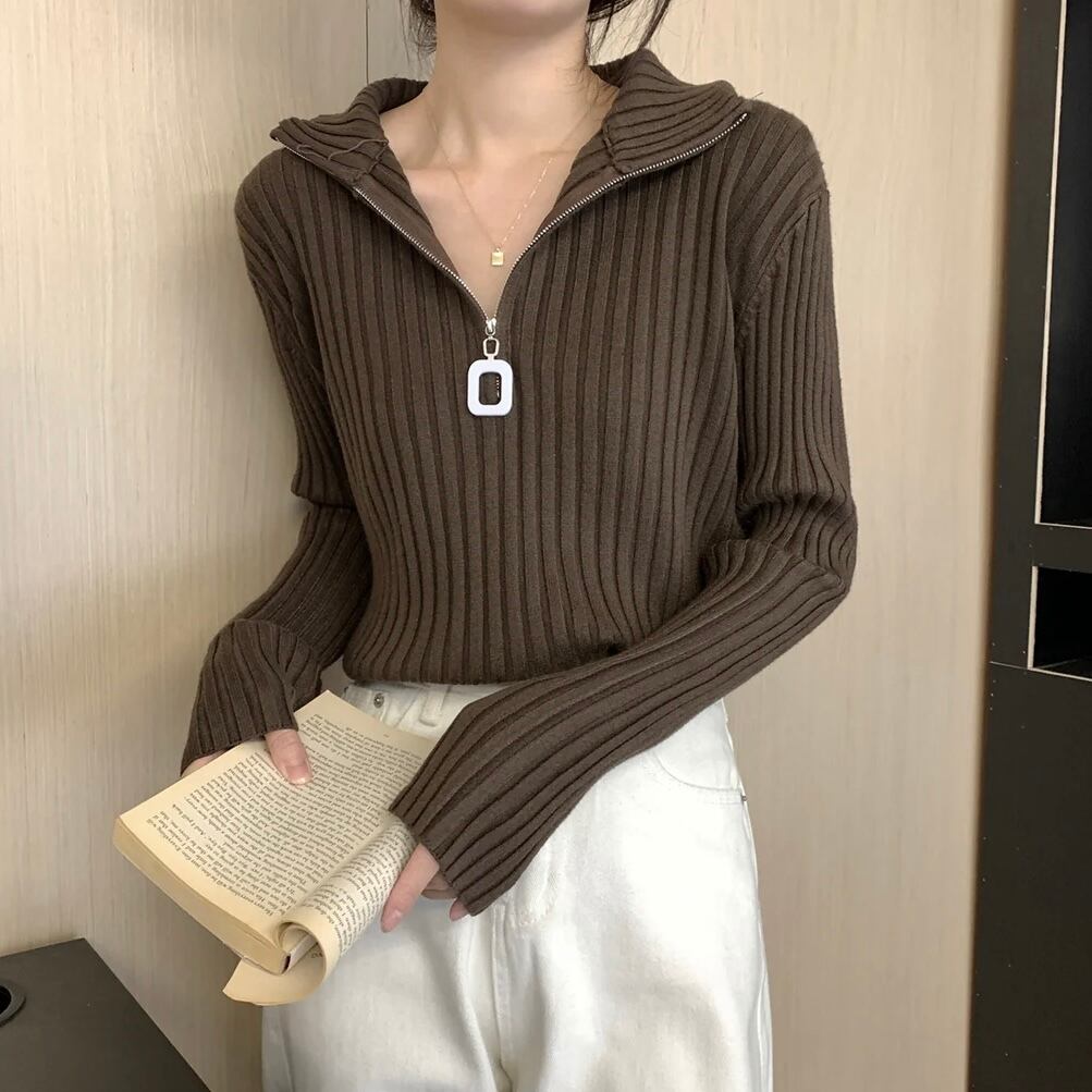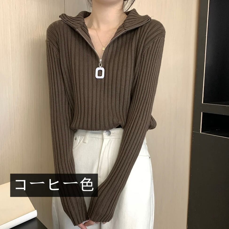 【tops】ファスナー厚手ニットセーター5色 MA0228
