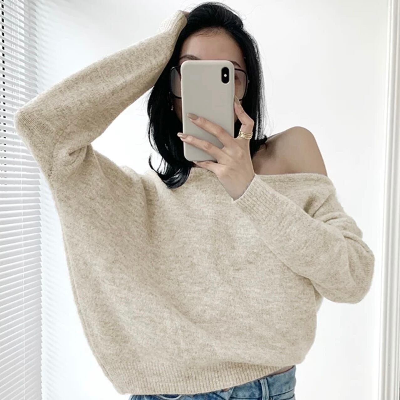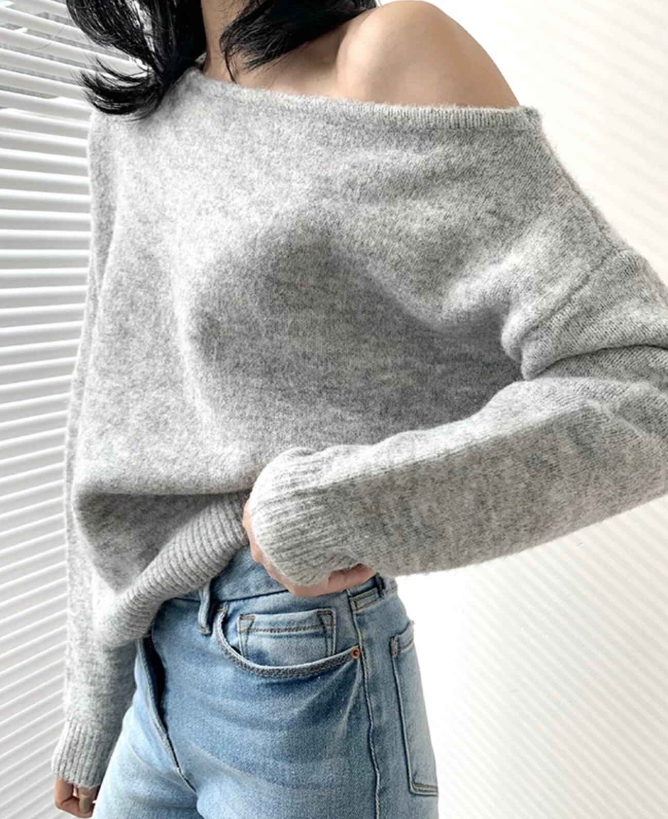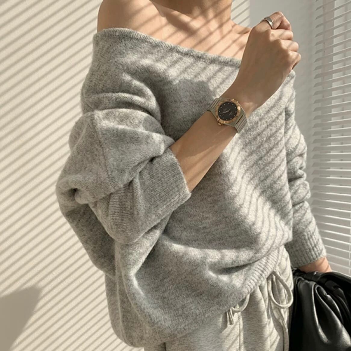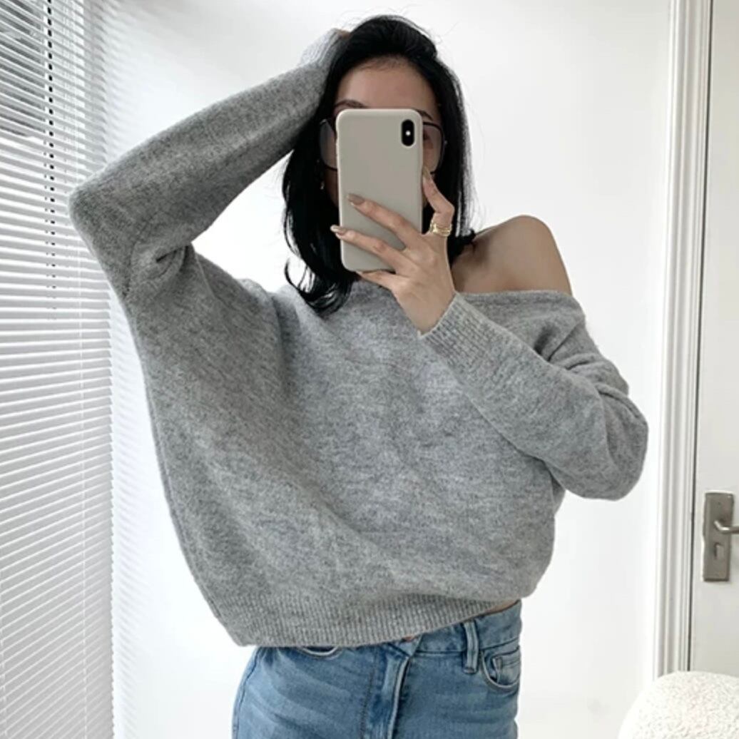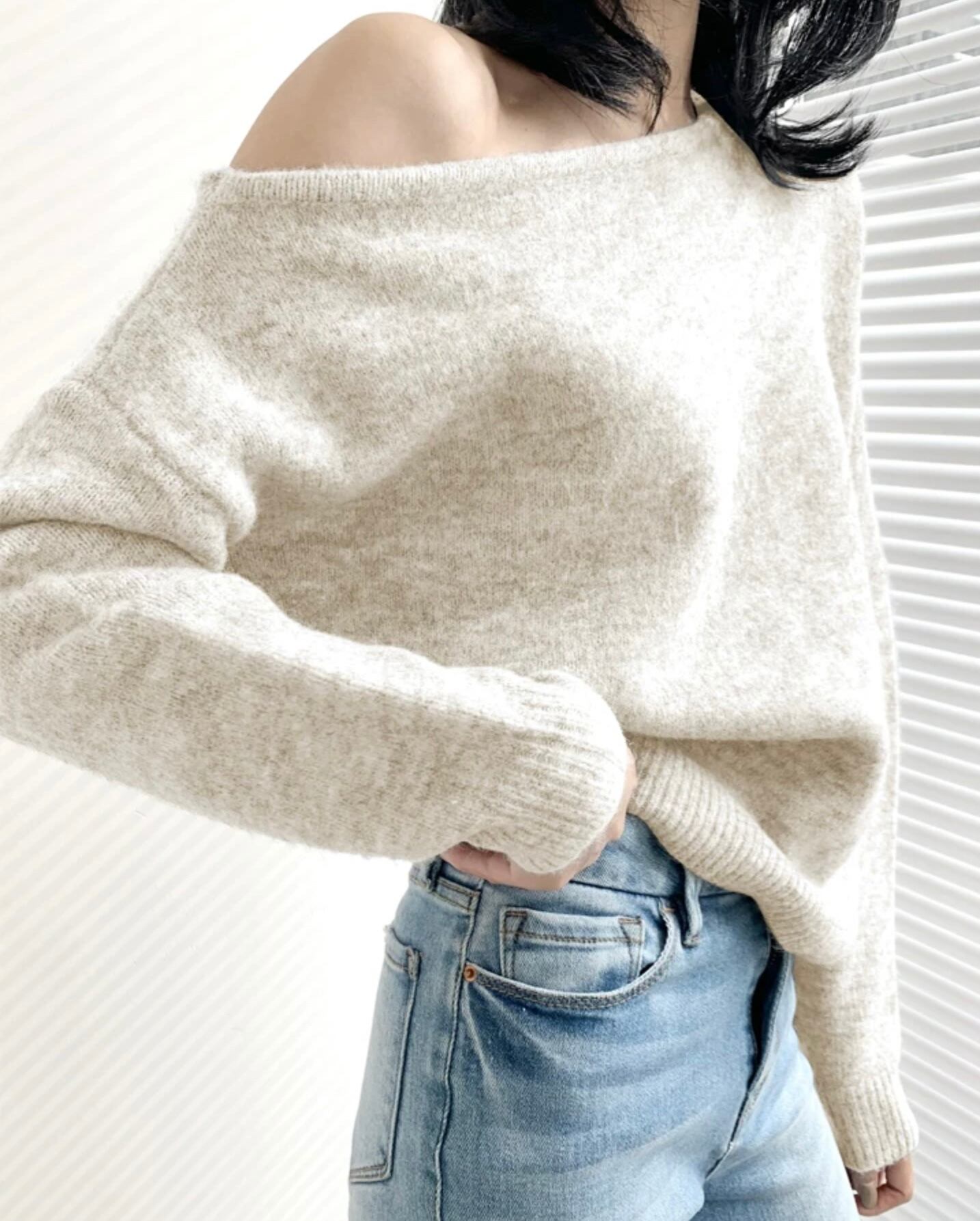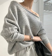 【tops】オフショルダールーズニット3色 MA0239