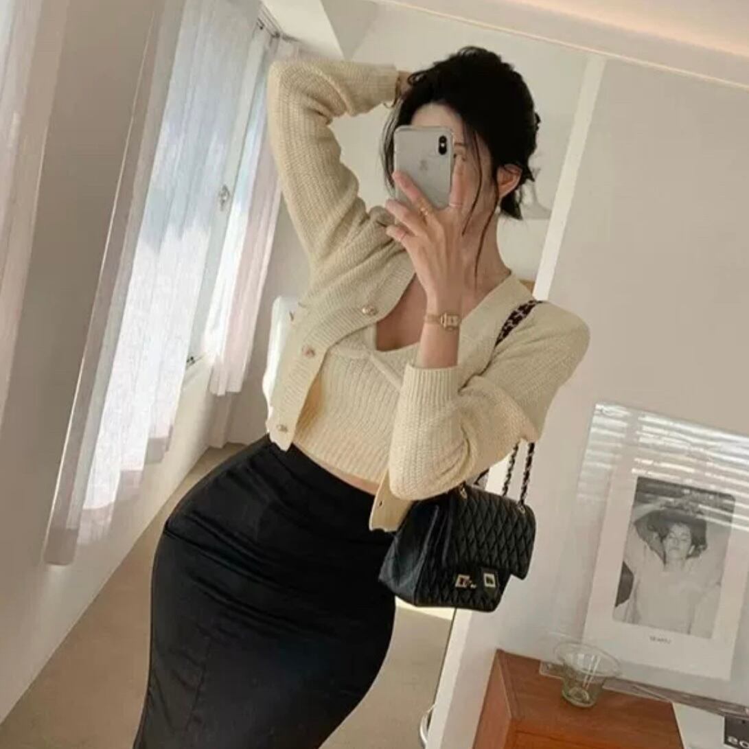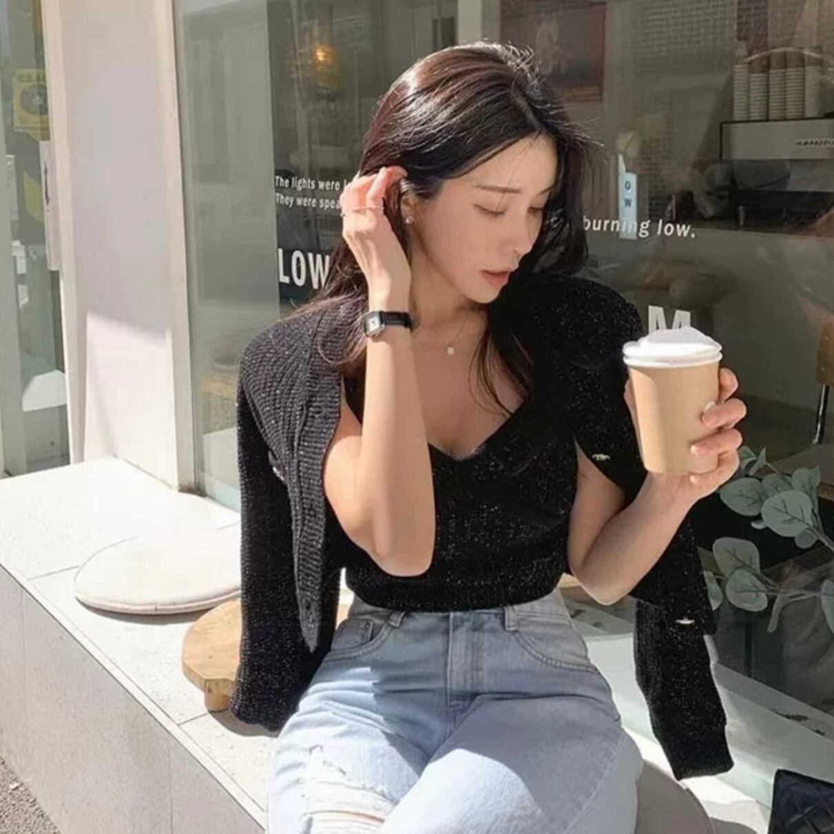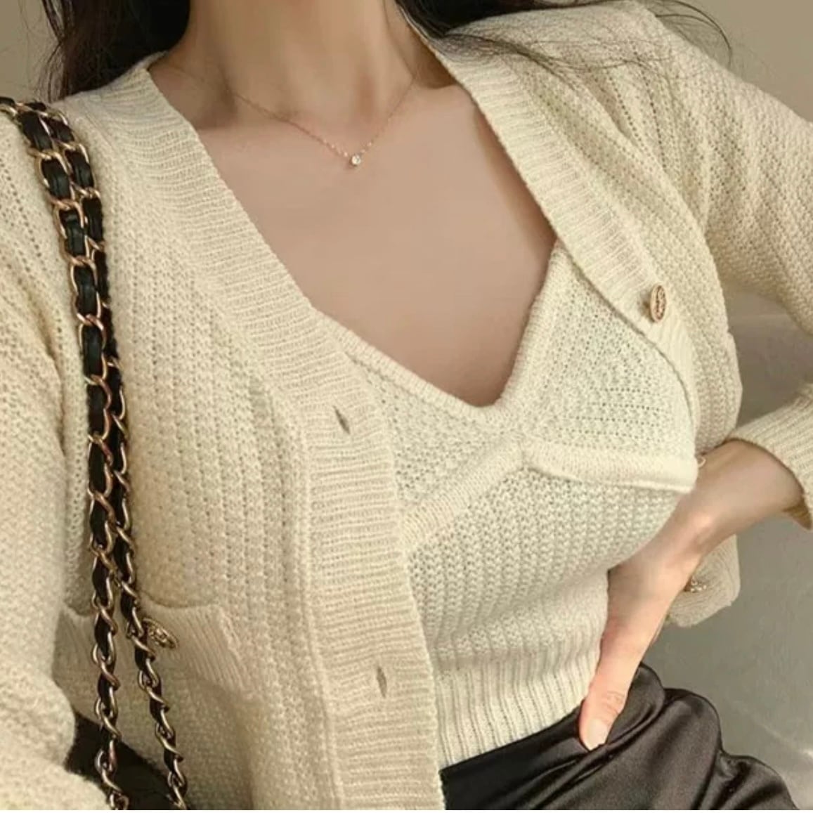 【set】Vネックニットキャミ×ニットアンサンブル 2色 MA0241