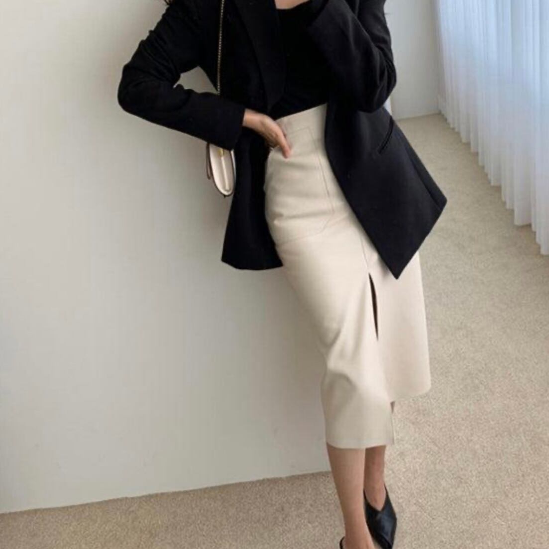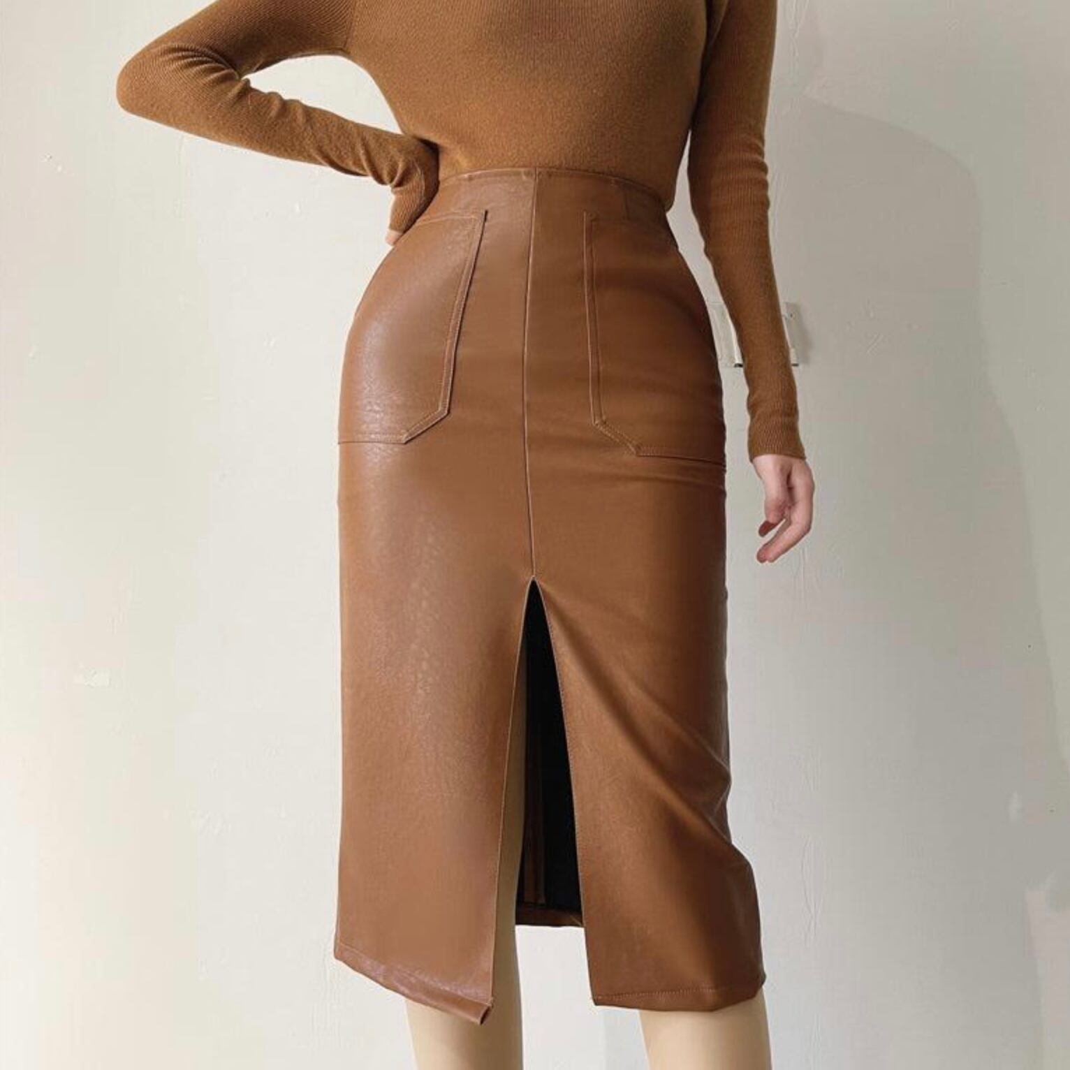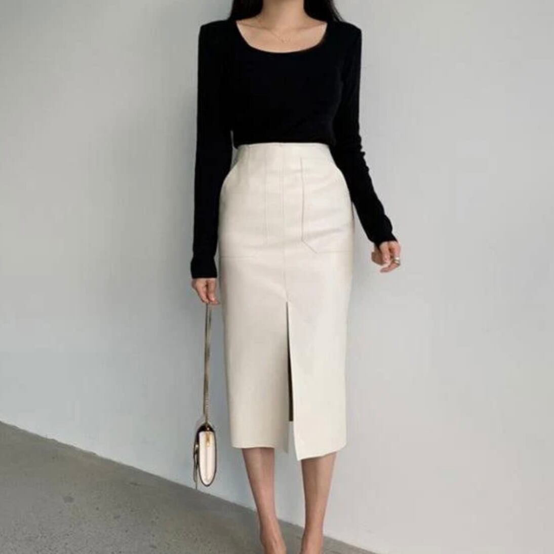 【bottoms】レザースリムスリットスカート3色 MA0243