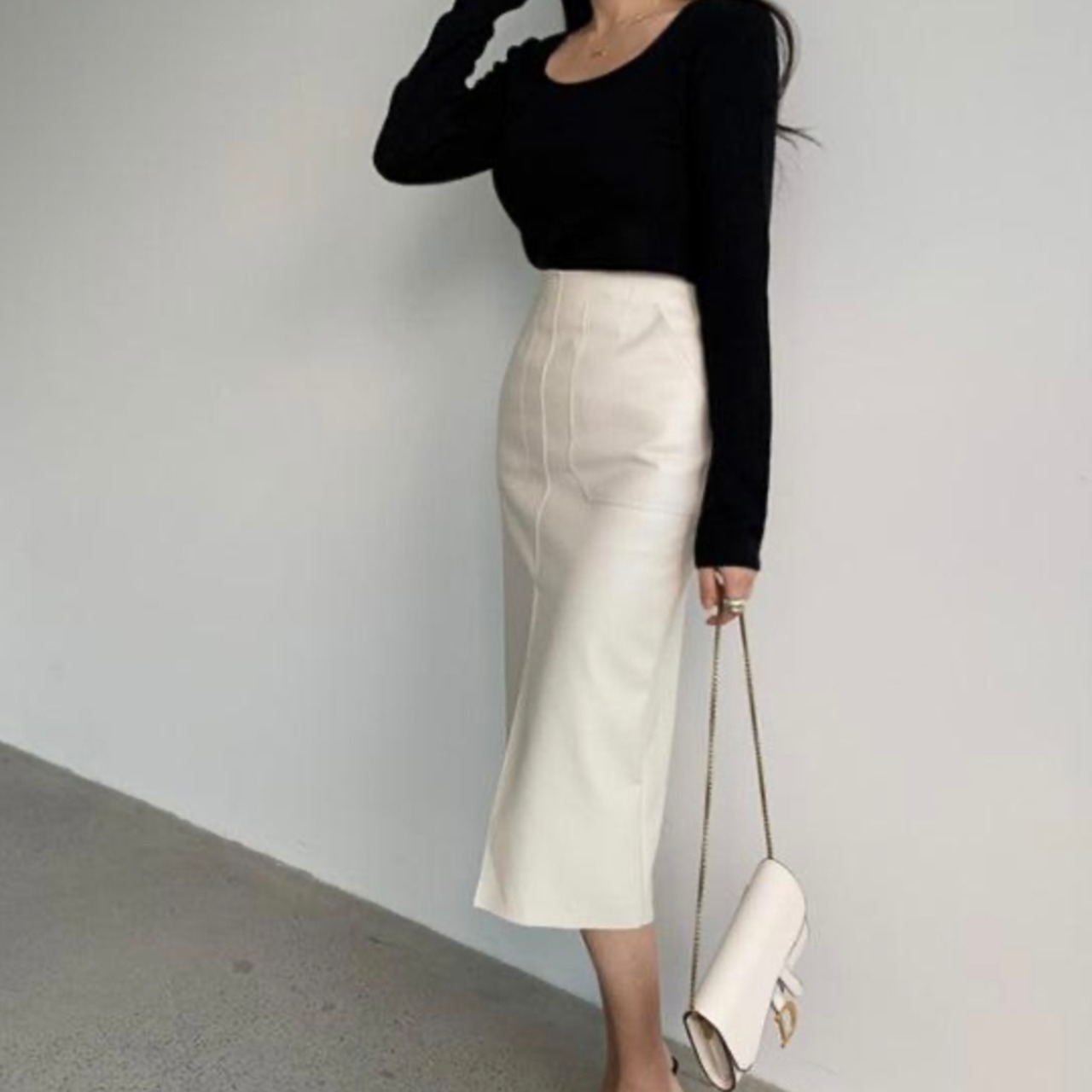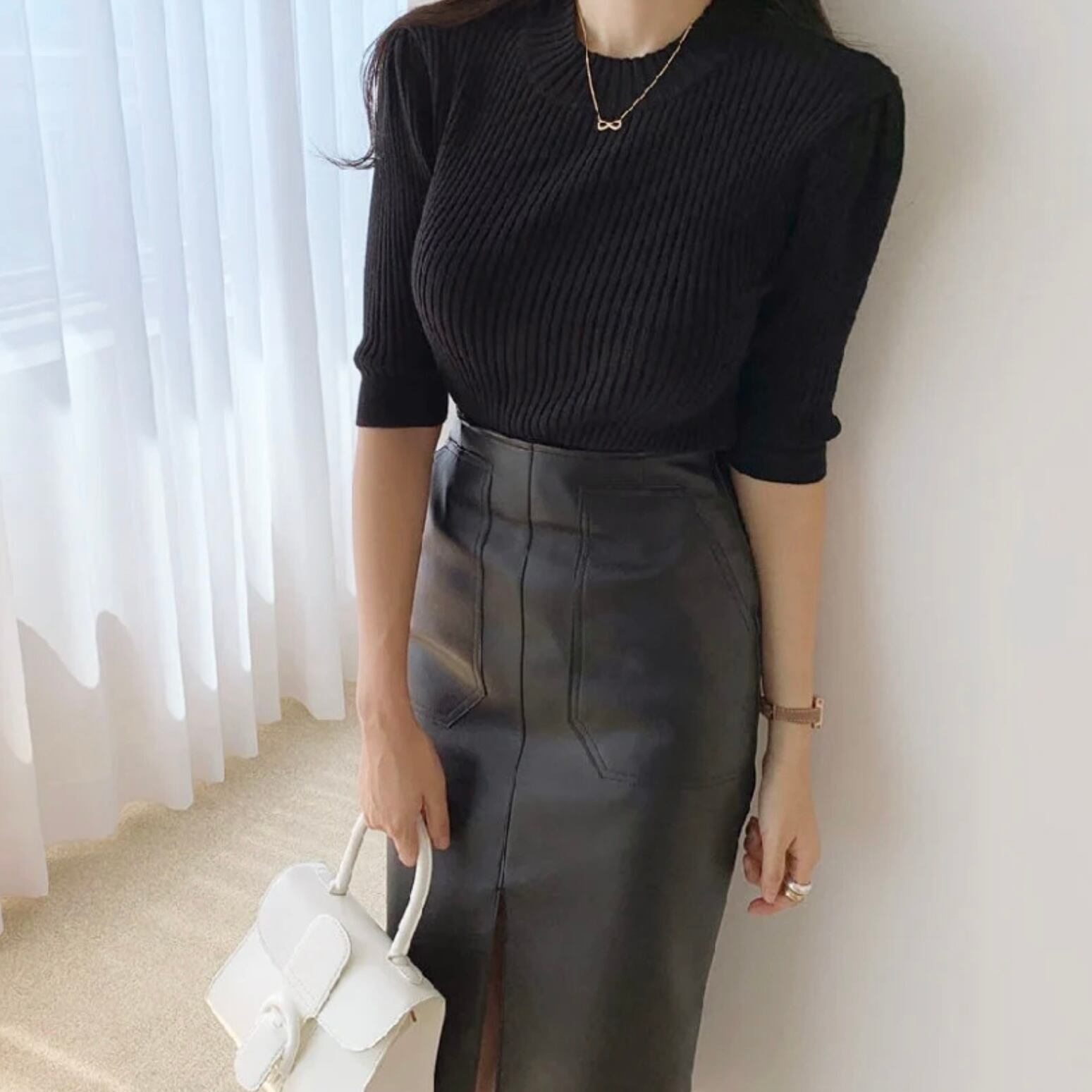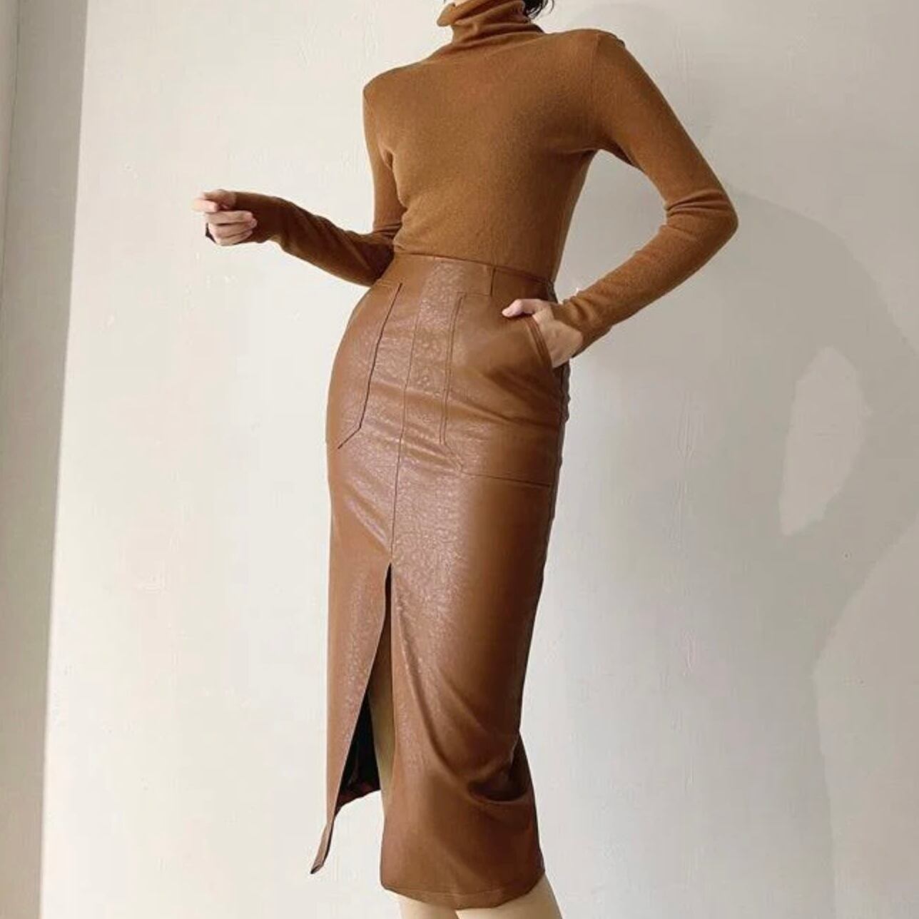 【bottoms】レザースリムスリットスカート3色 MA0243