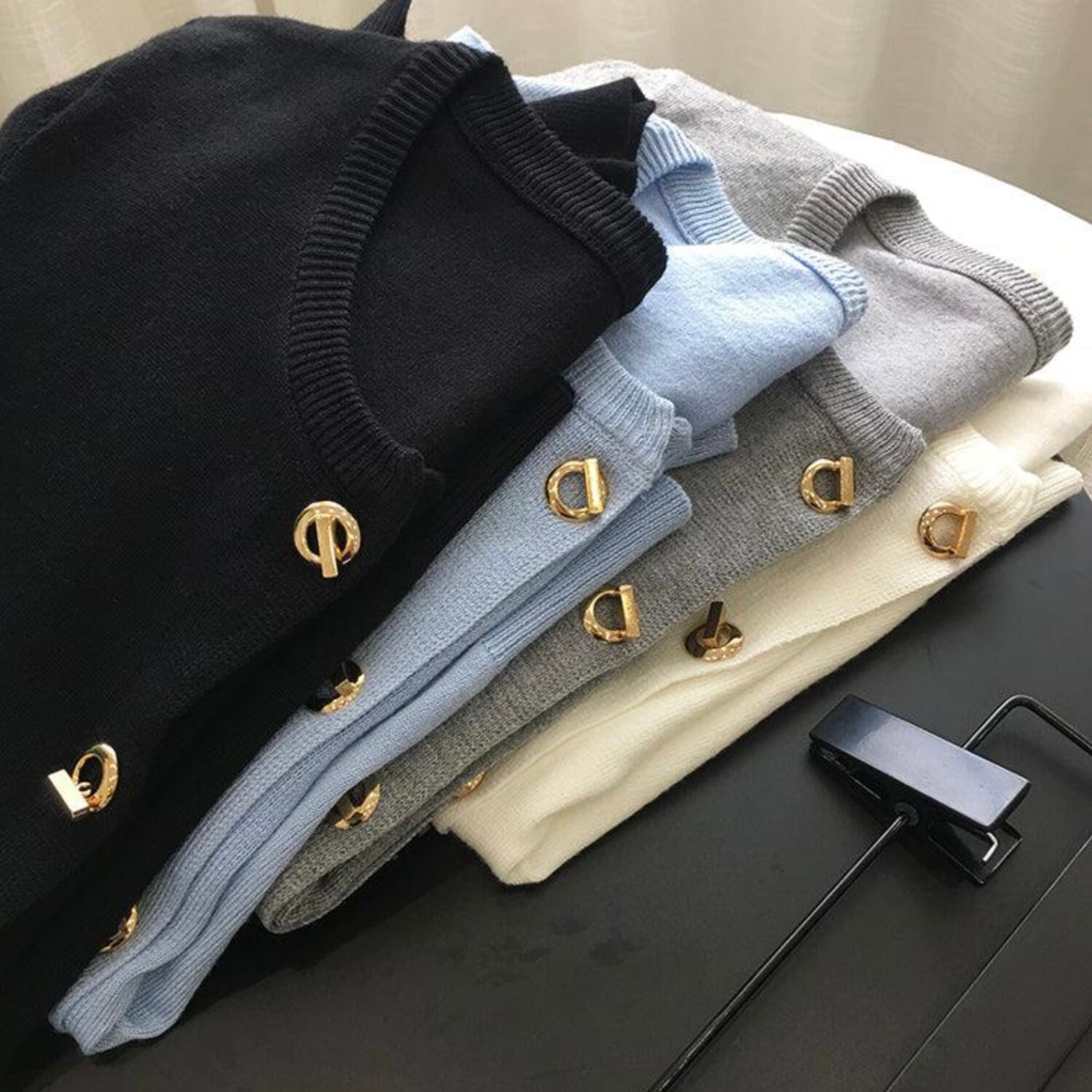 【tops】バックルボタンカーディガン4色 MA0245