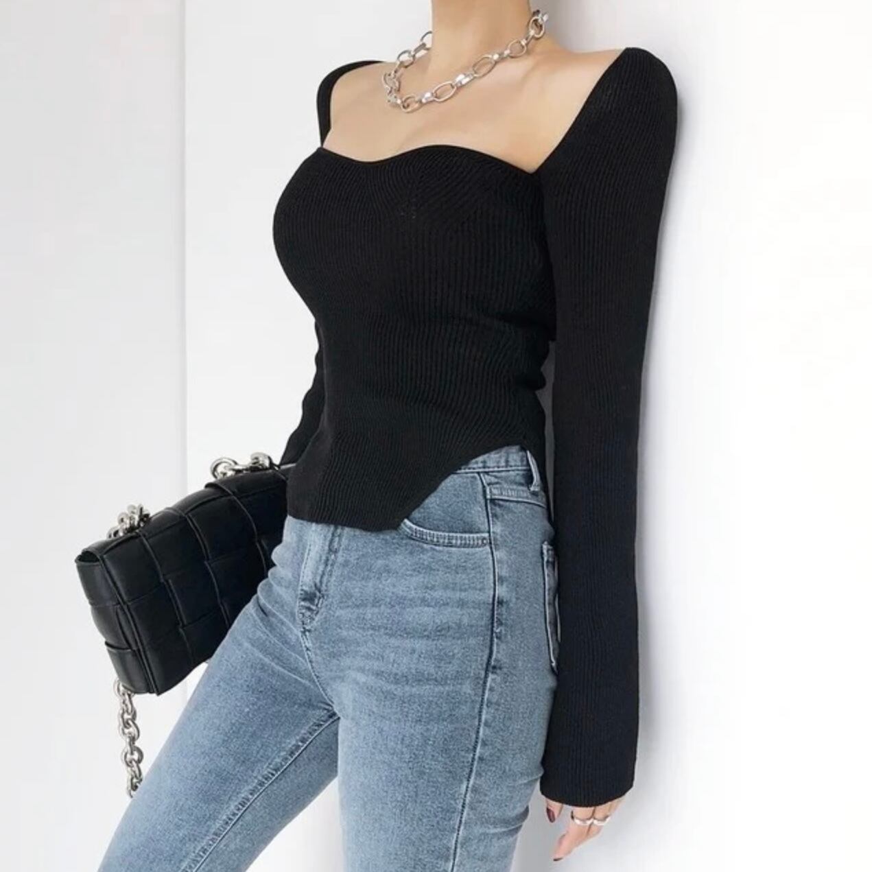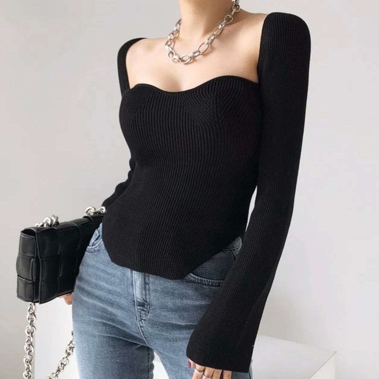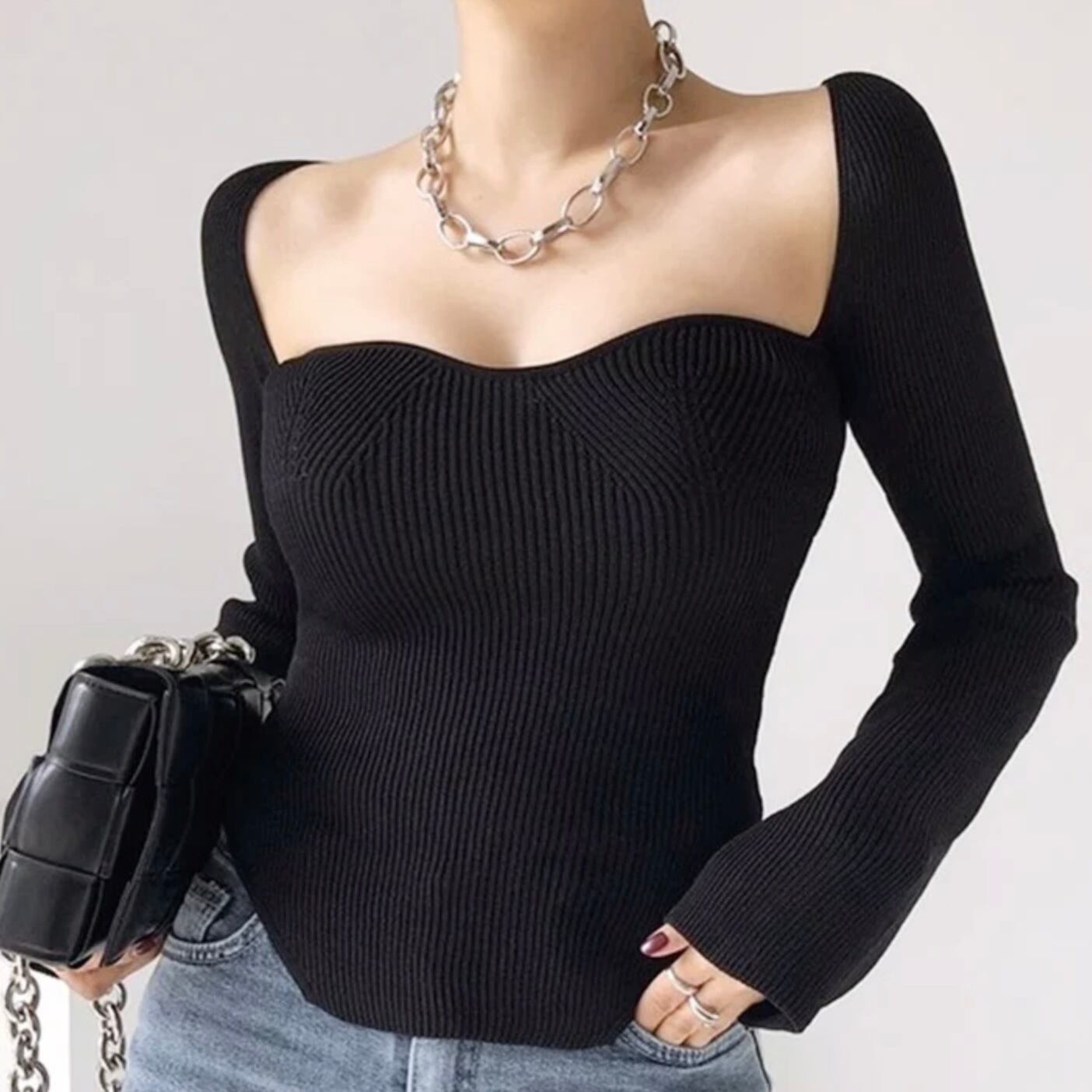 【tops】スクエアカラーリブニットトップス2色 MA0249