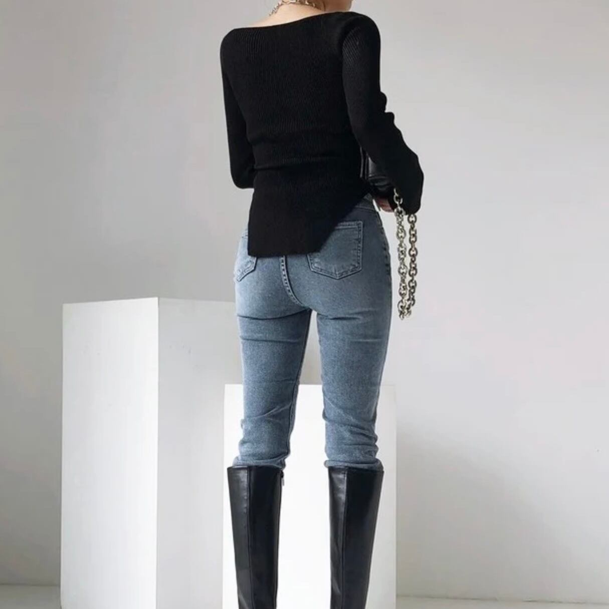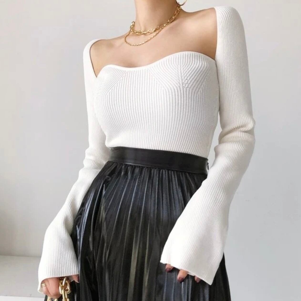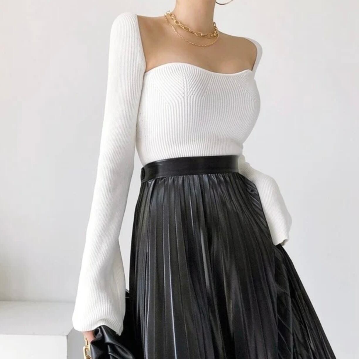【tops】スクエアカラーリブニットトップス2色 MA0249