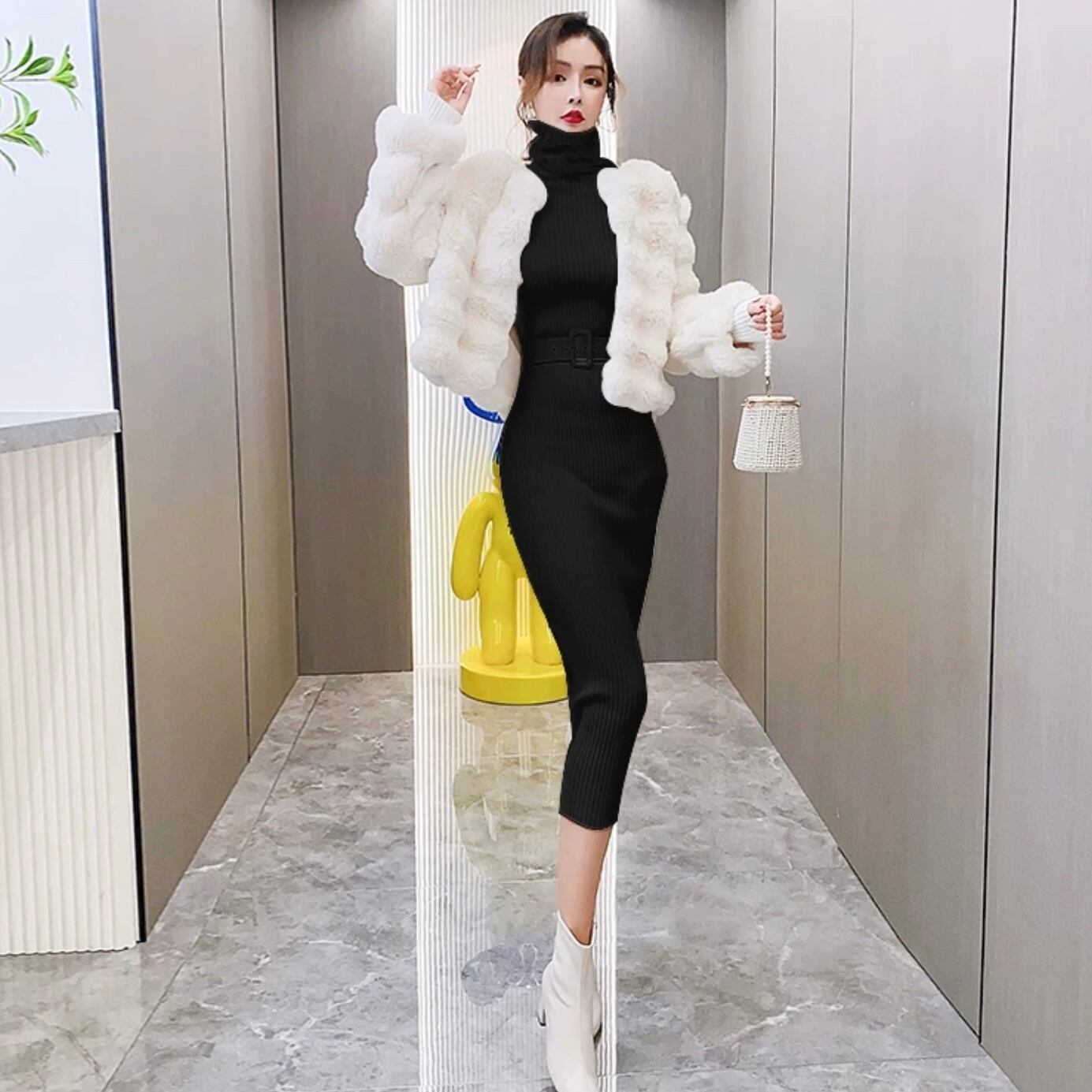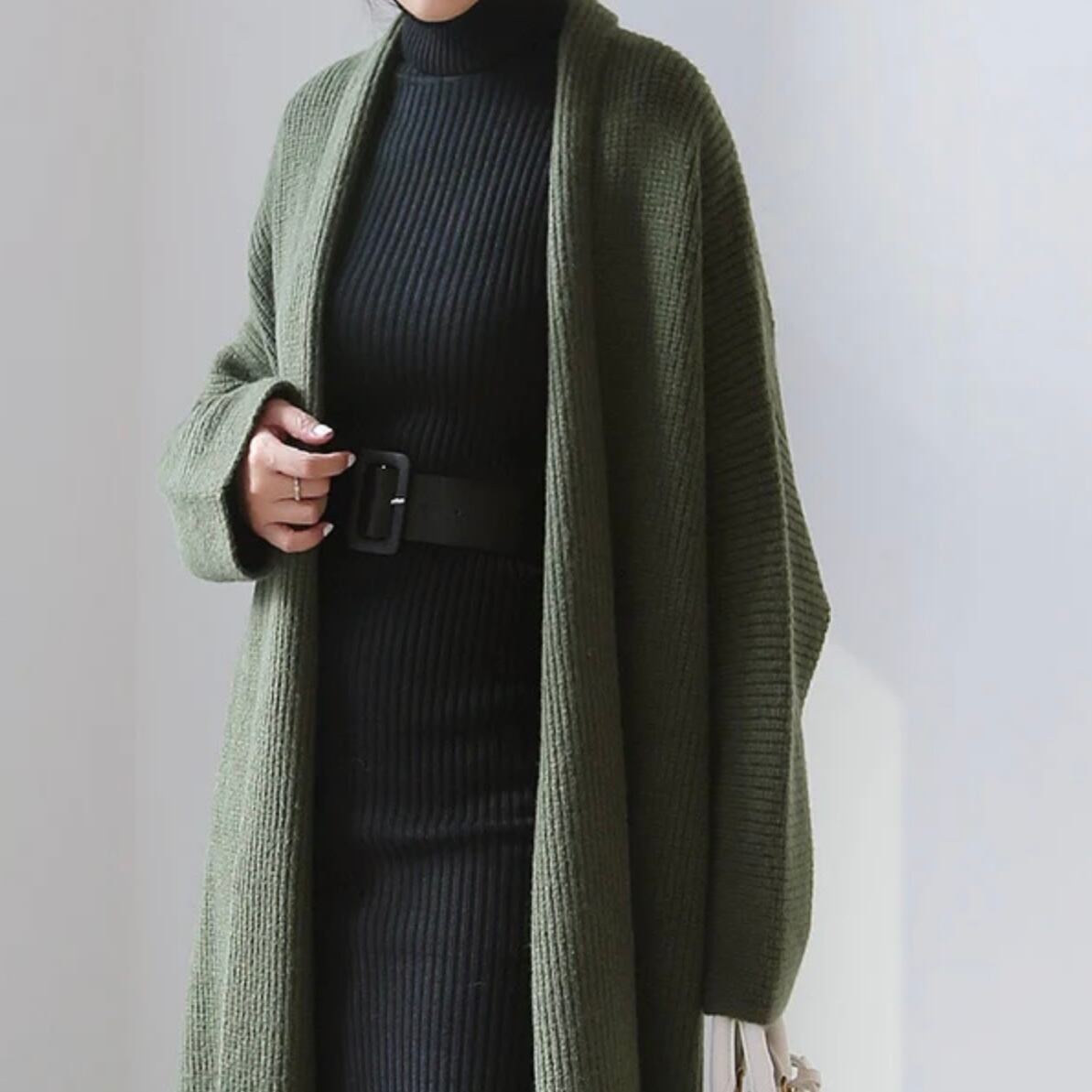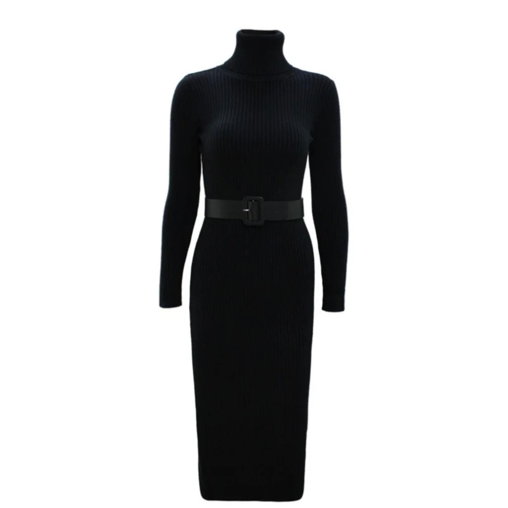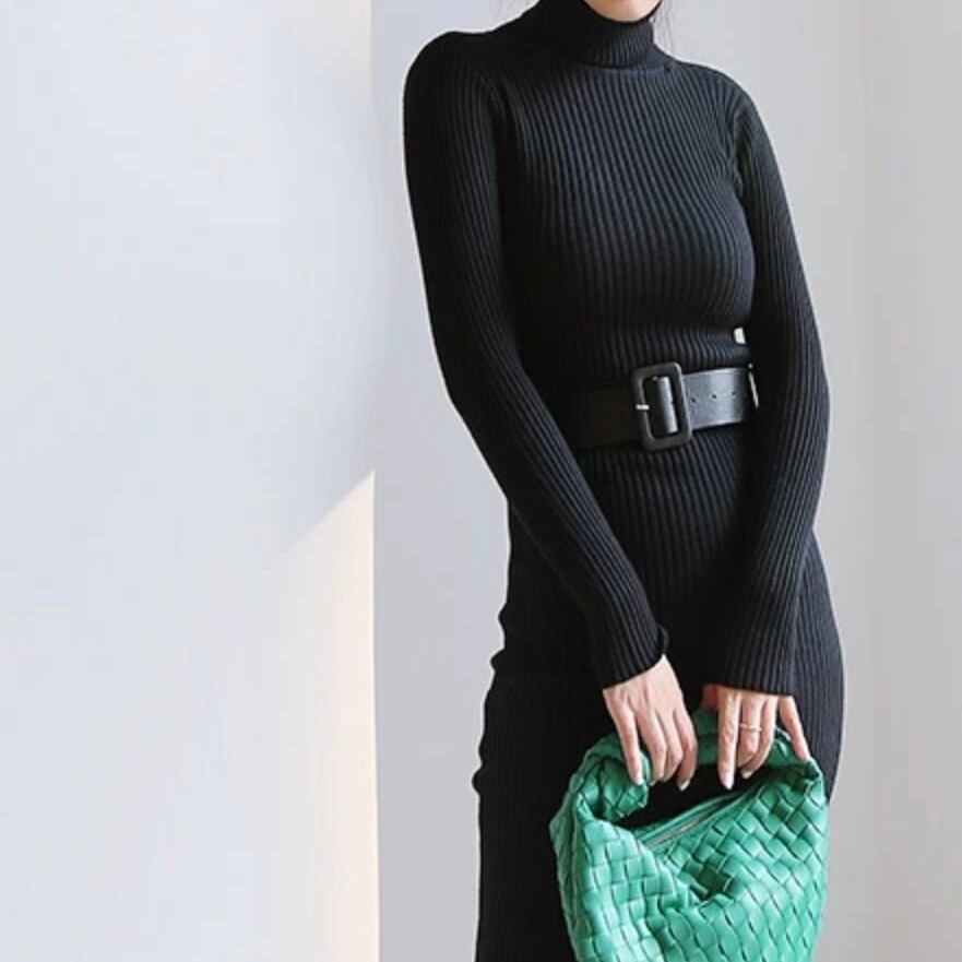 【dress】ハイネックタイトベルトニットワンピース2色 MA0261