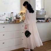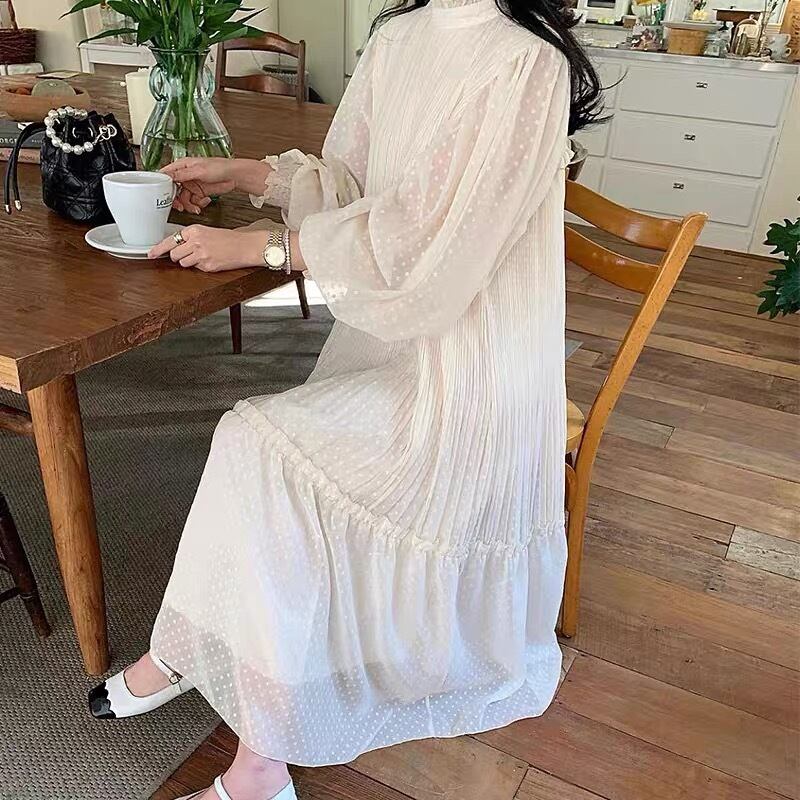 【dress】ドット柄フリル長袖ワンピース RZ9181