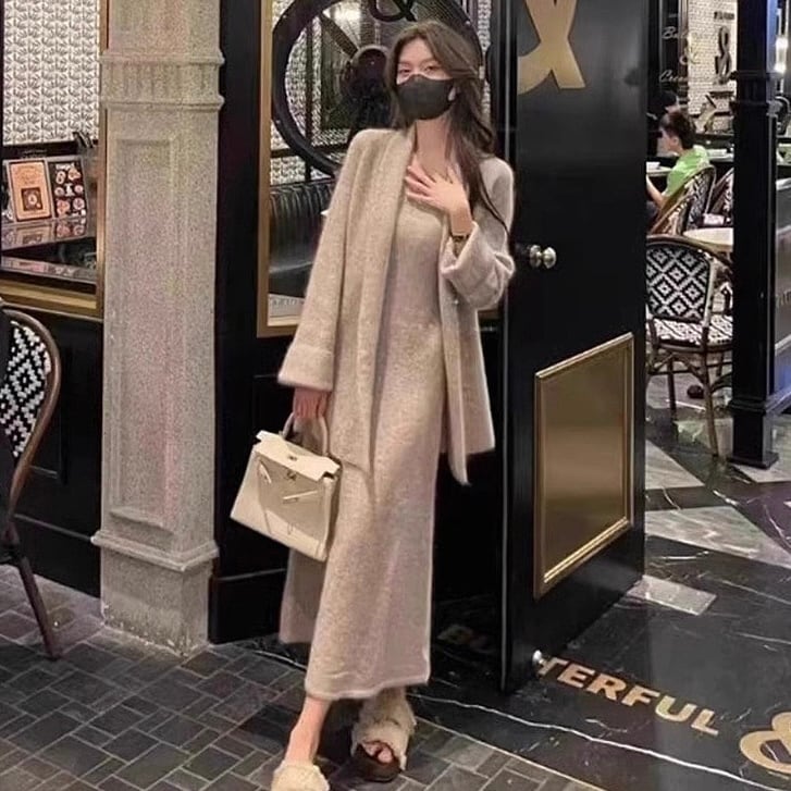 【set】カーディガンxキャミワンピース2色 IR9184