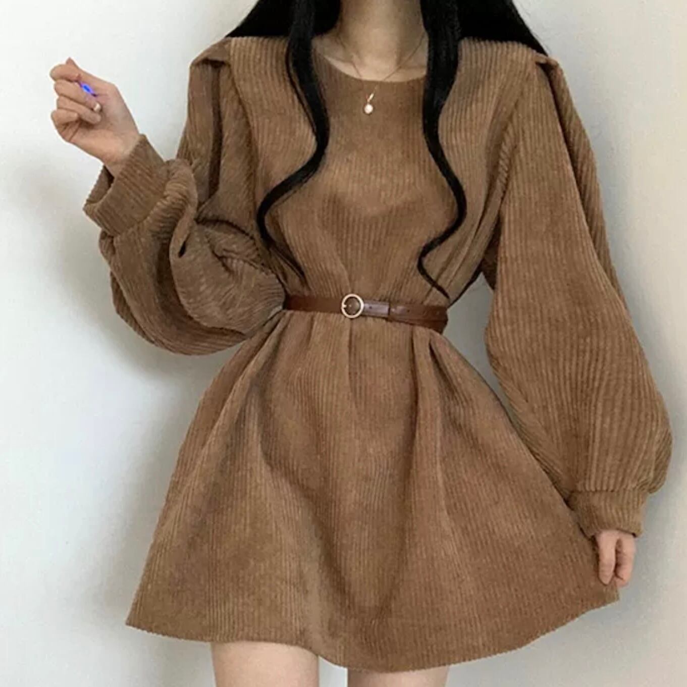 【dress】ウエストベルトコーデュロイワンピース3色 MA0275
