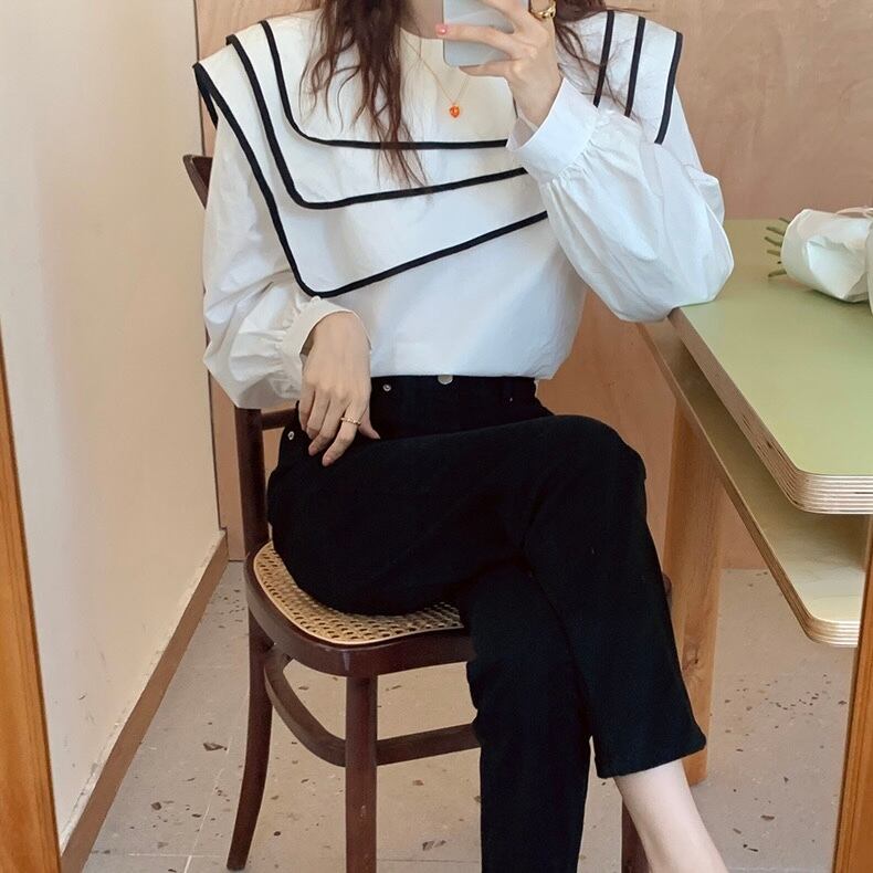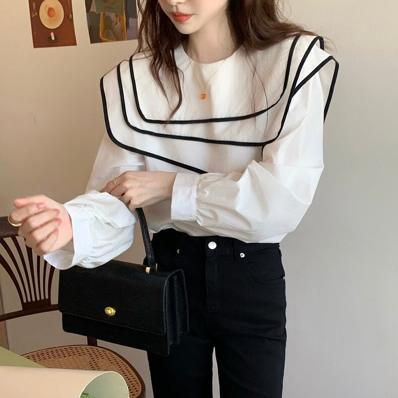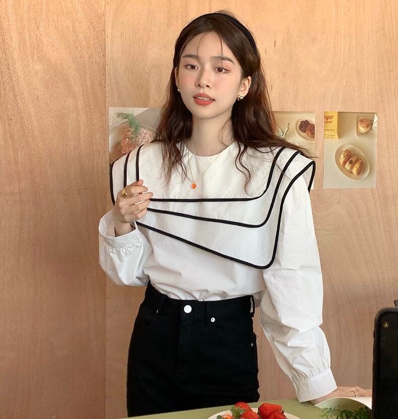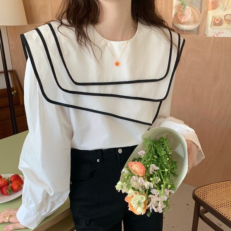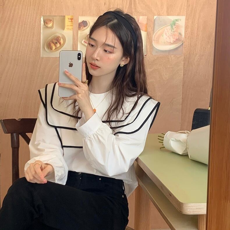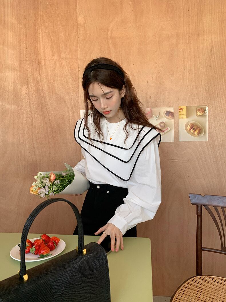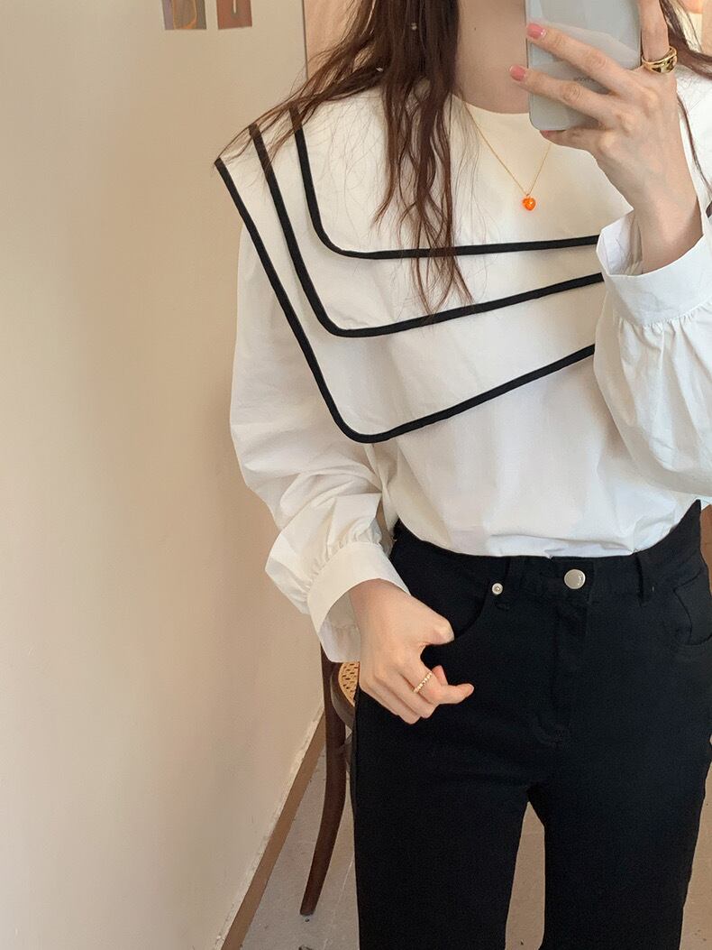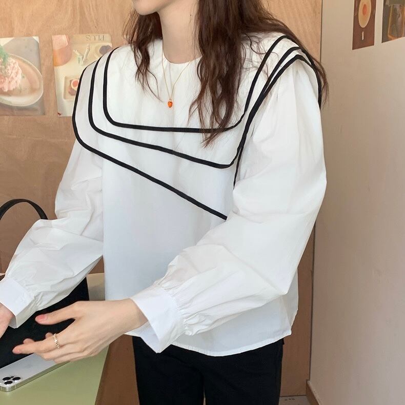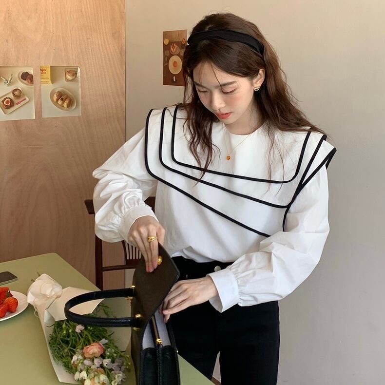 【tops】ビッグ襟不規則長袖シャツトップス RR9213