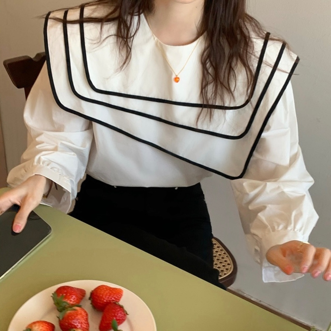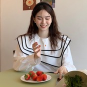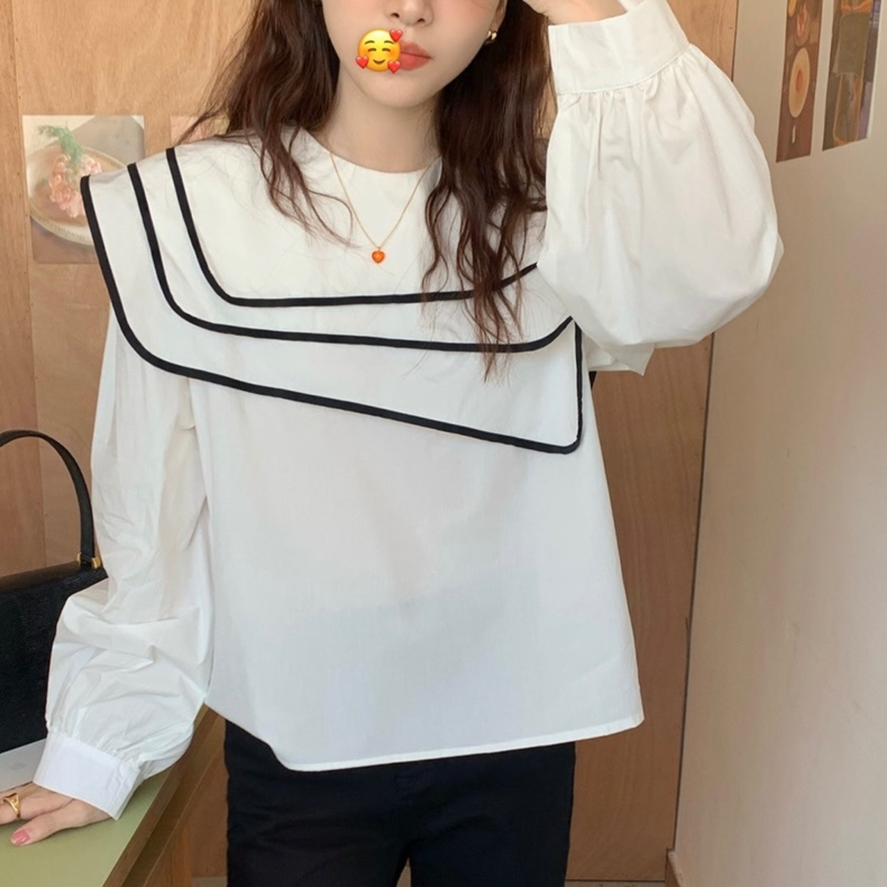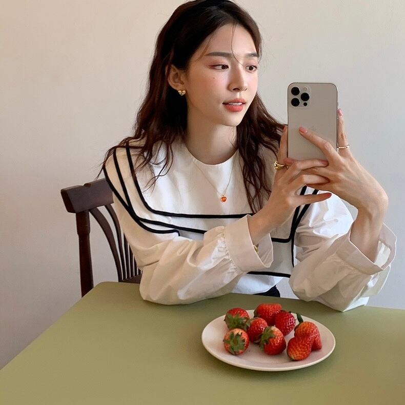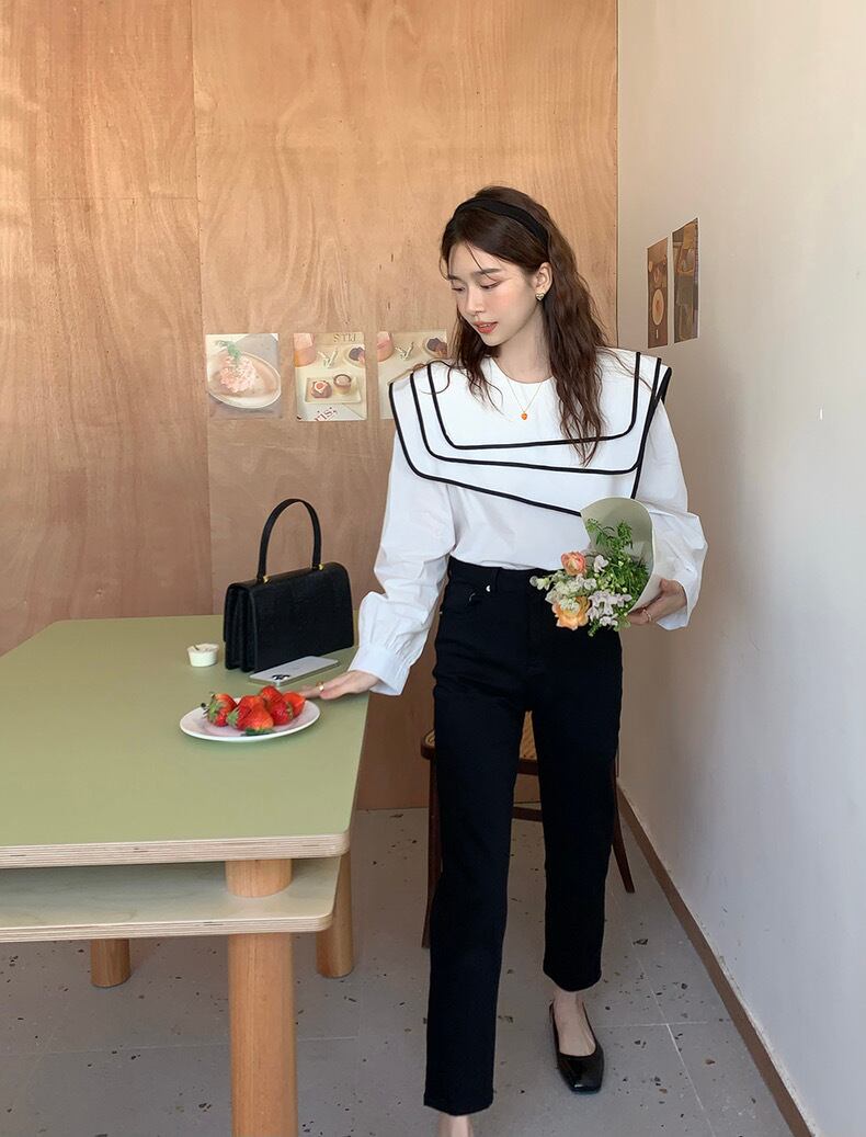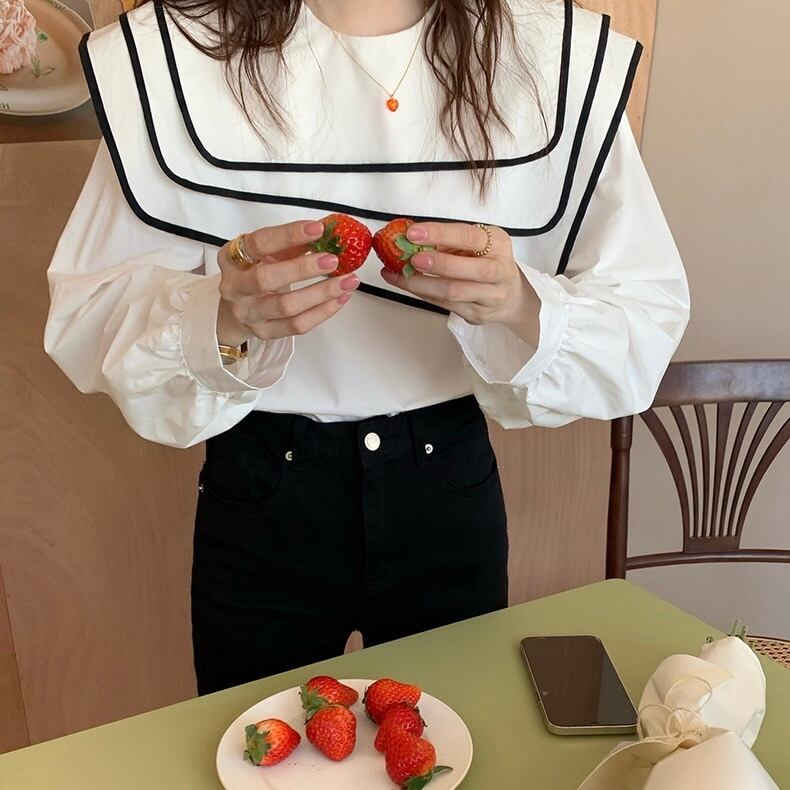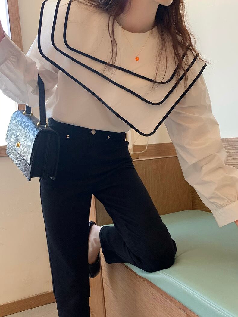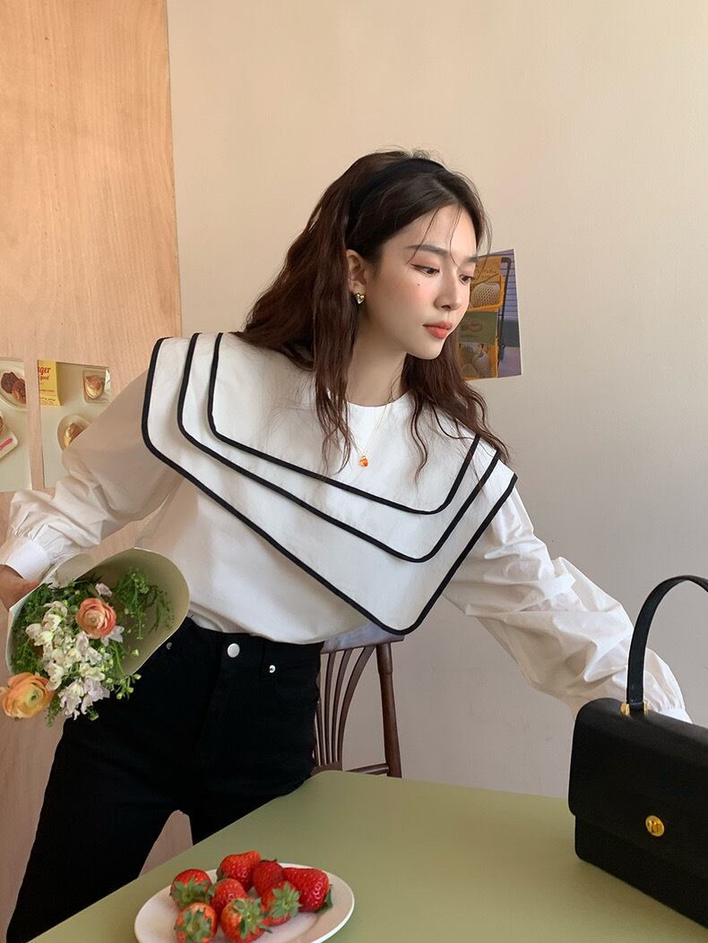 【tops】ビッグ襟不規則長袖シャツトップス RR9213