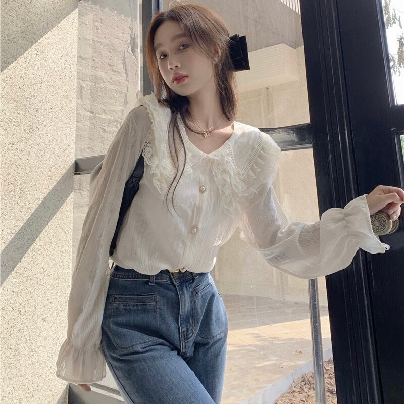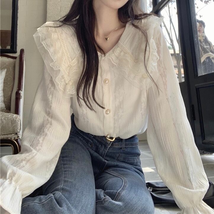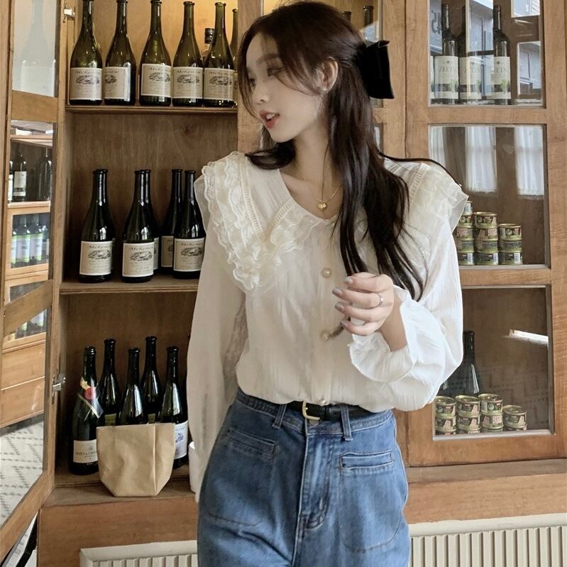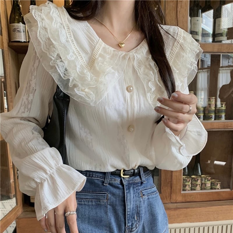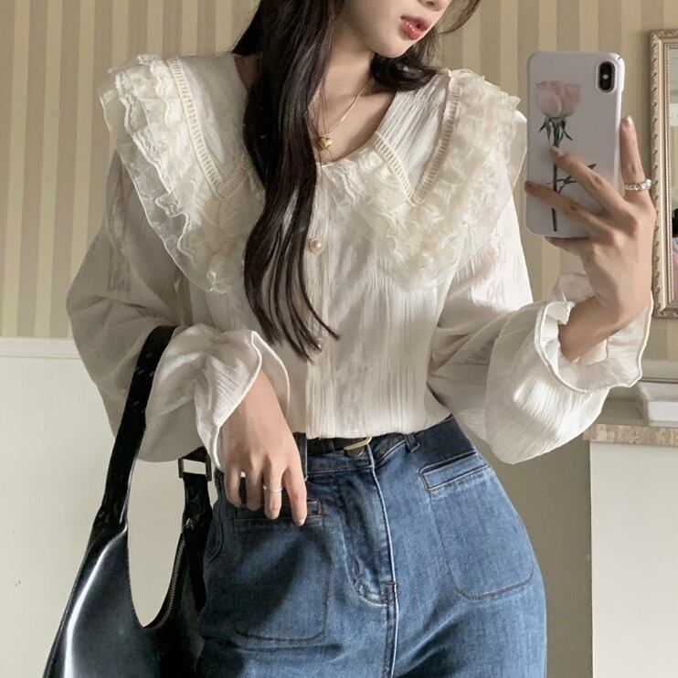 【tops】ビッグ襟付きシャツブラウス XT9223