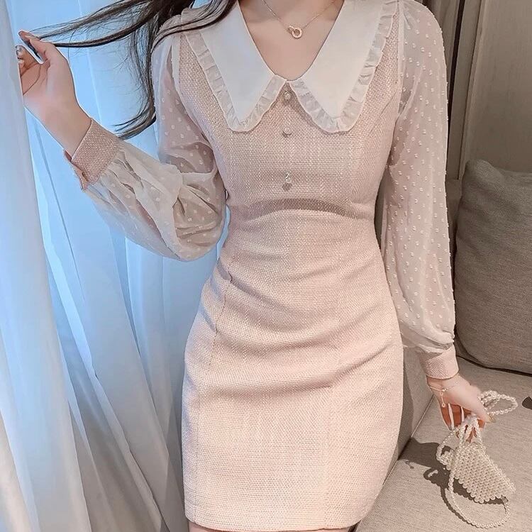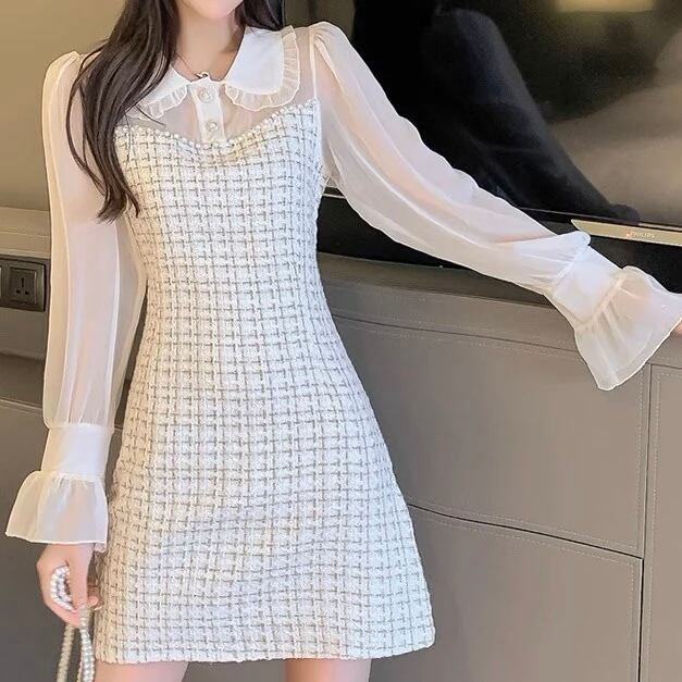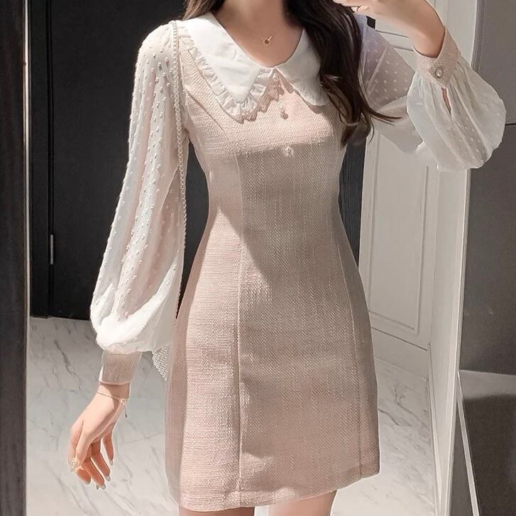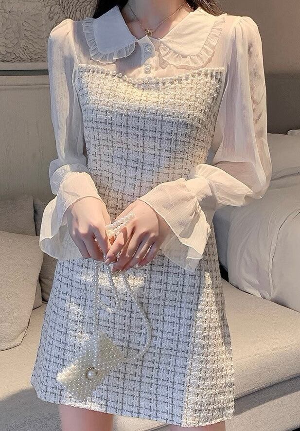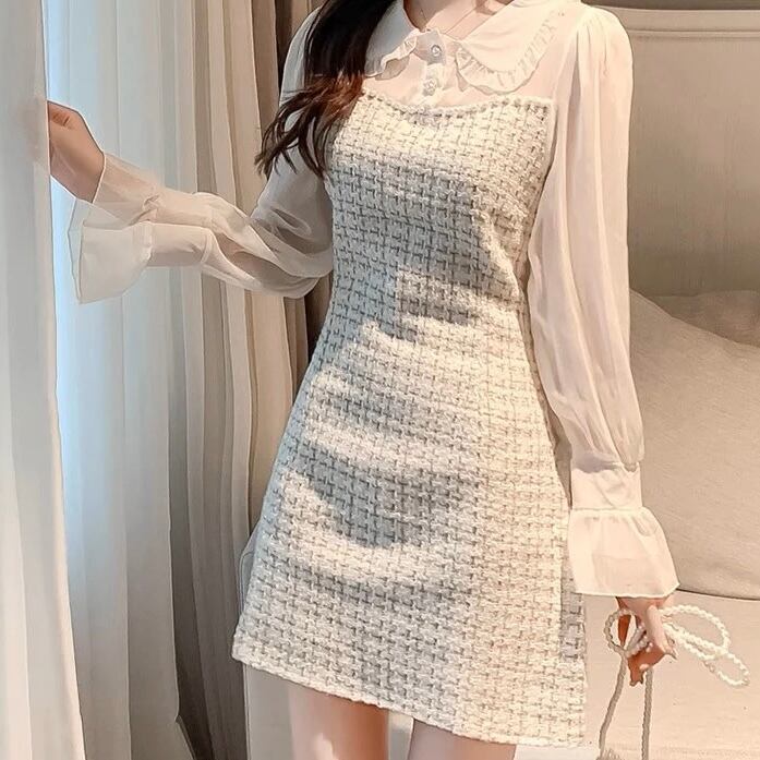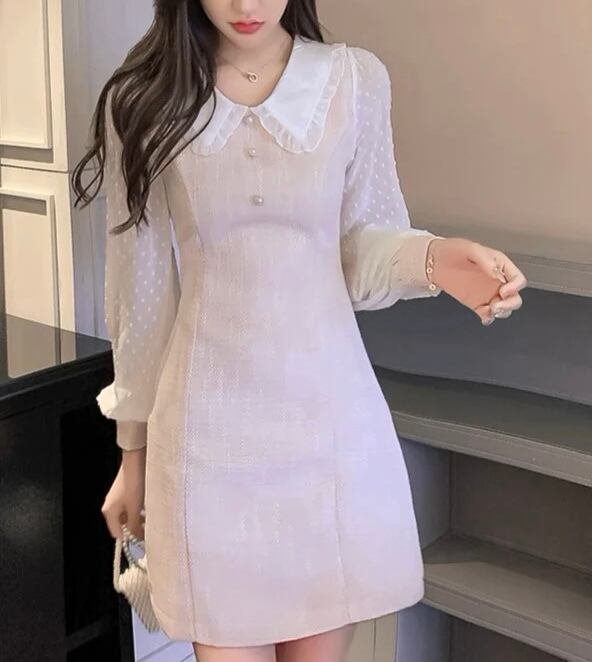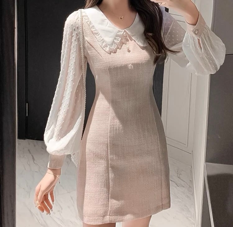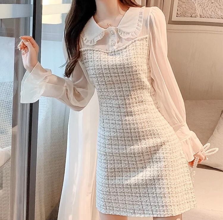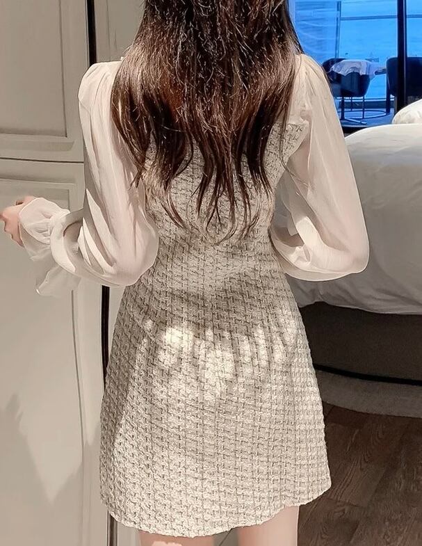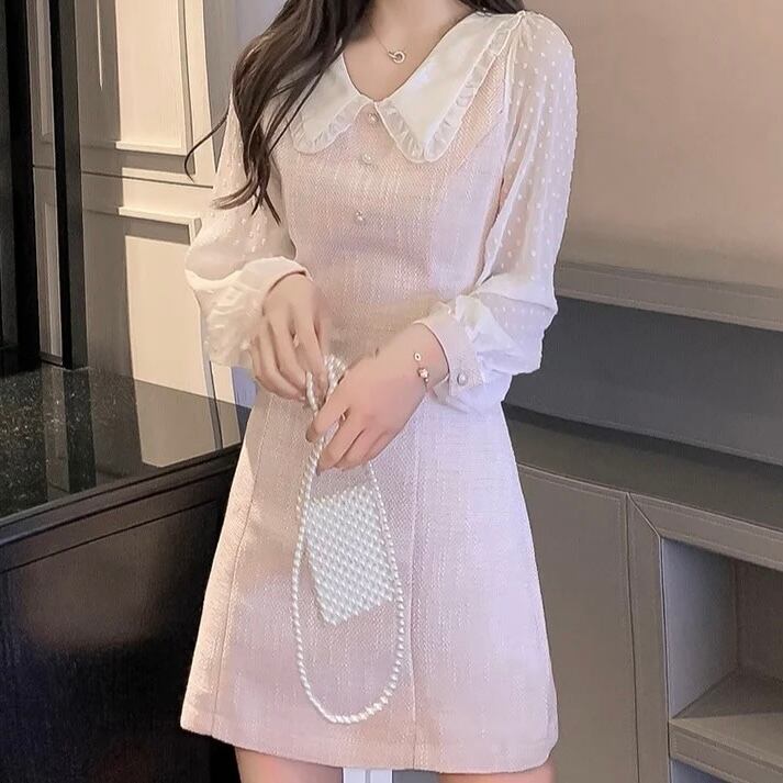 【dress】襟付きツイード長袖ワンピース2色 MA0276