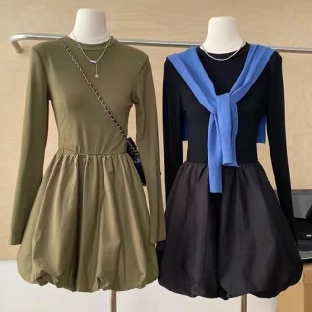 【dress】ウエスト切り替えフレアワンピース2色 MA0294