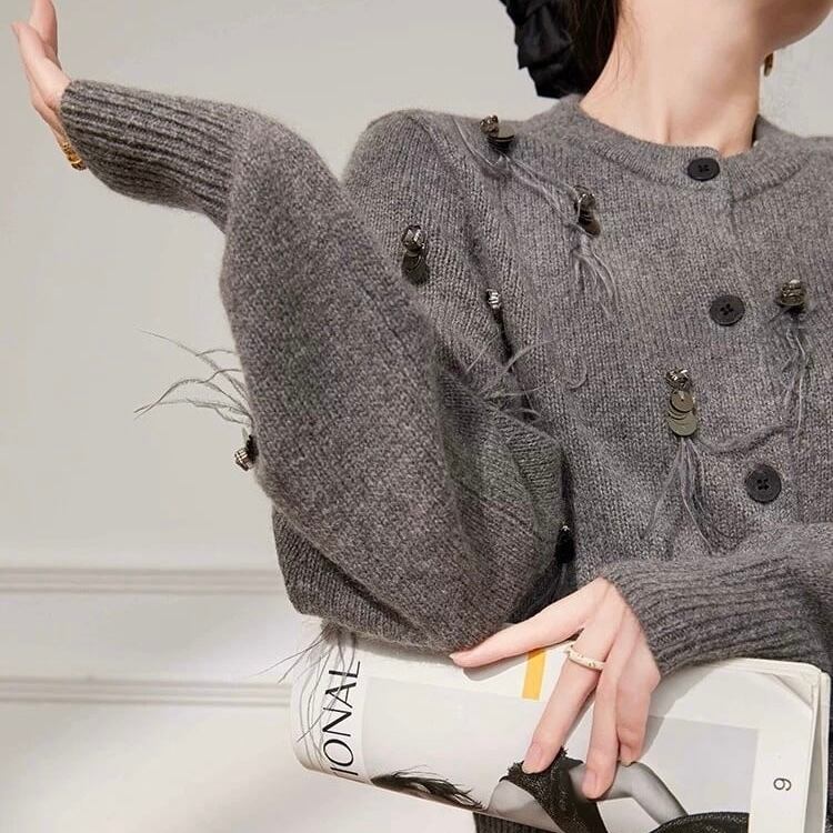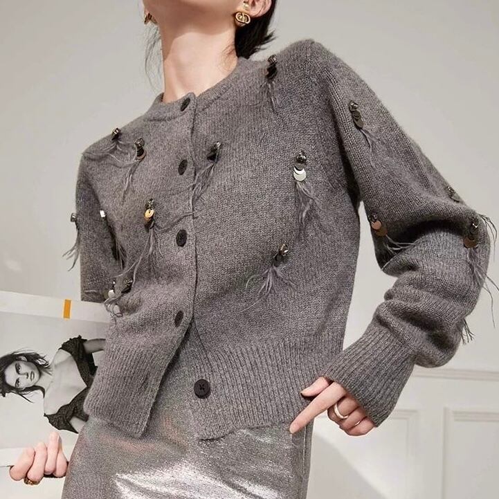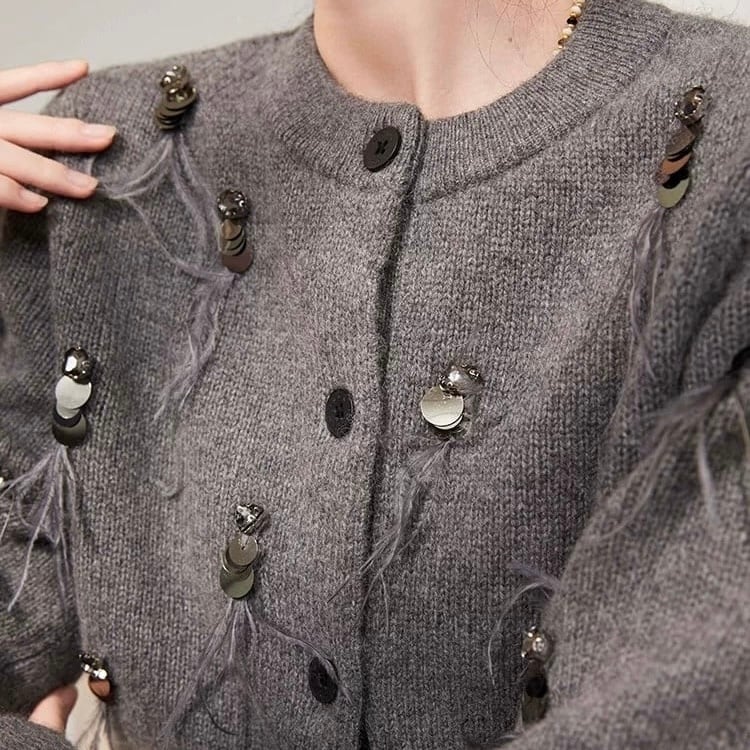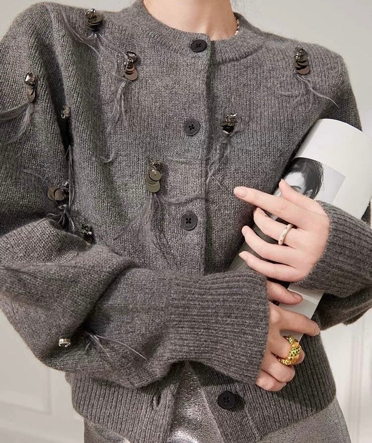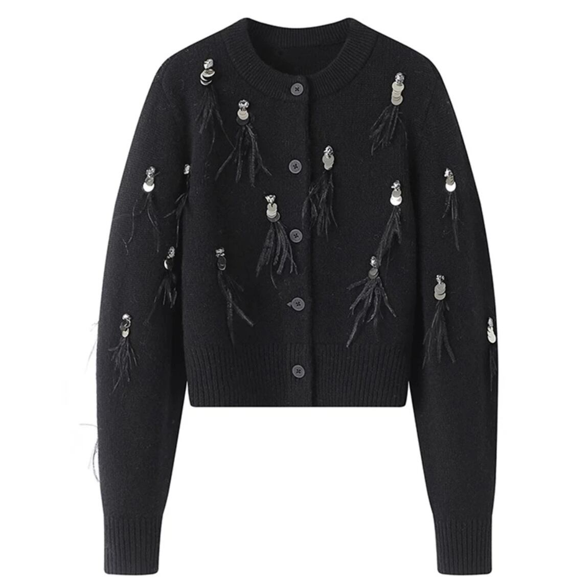 【outer】フリンジ スパンコールカーディガン2色 MA0301