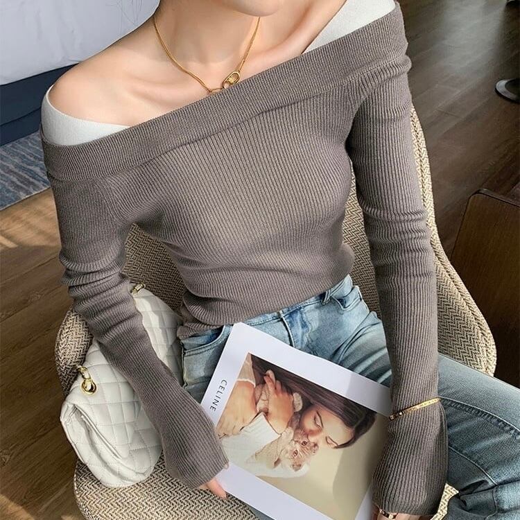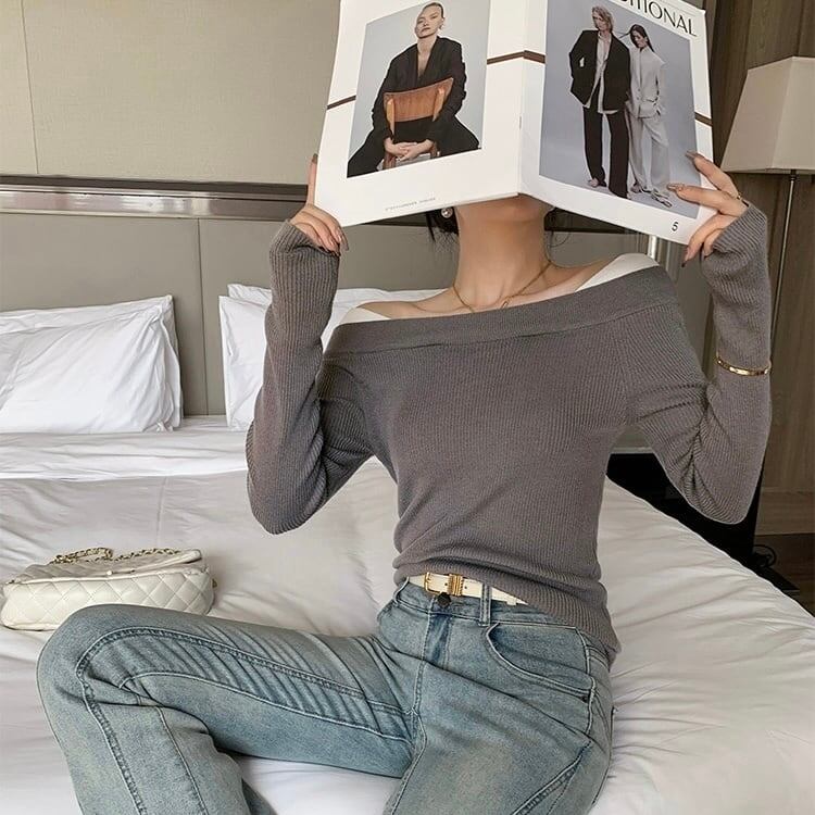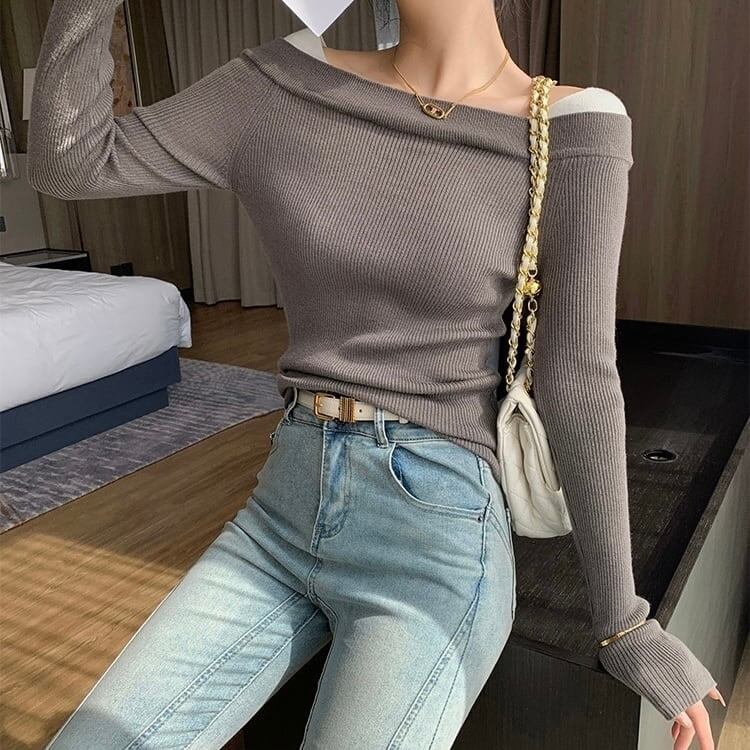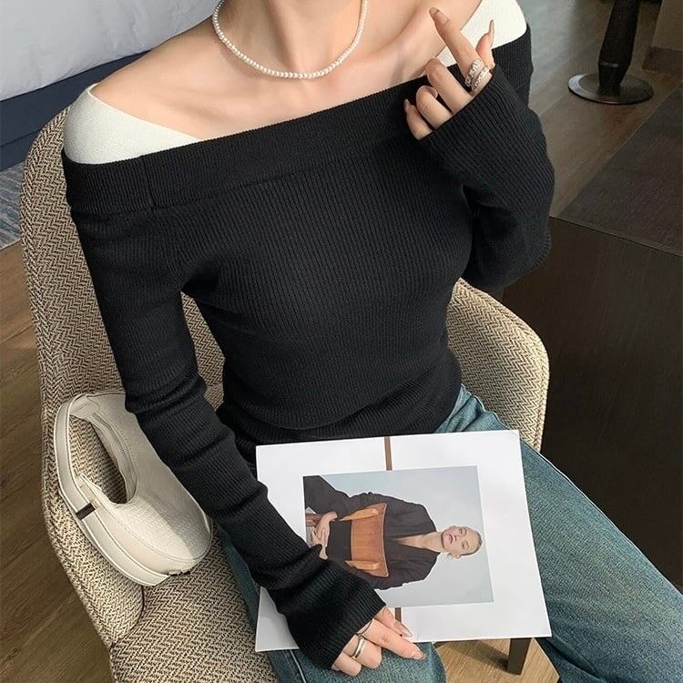 【tops】オフショルダーリブニット2色 MA0303