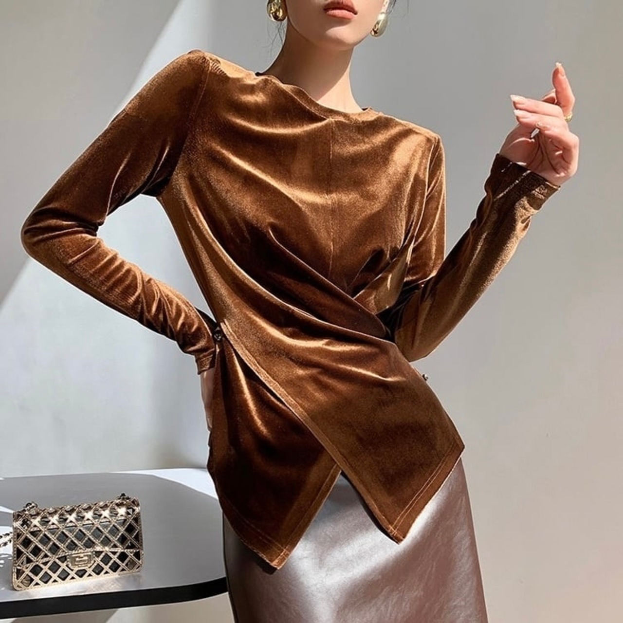【tops】ベロア長袖トップス 2色 MA0304