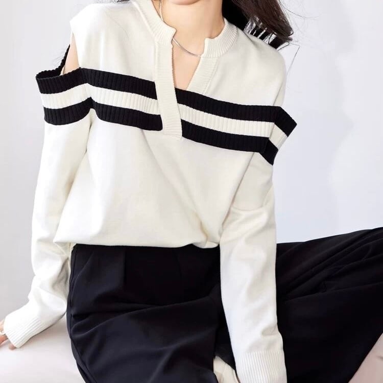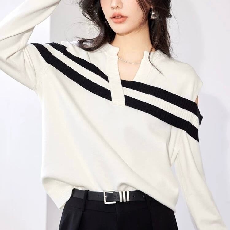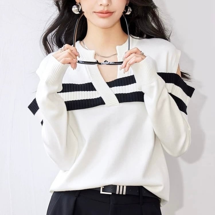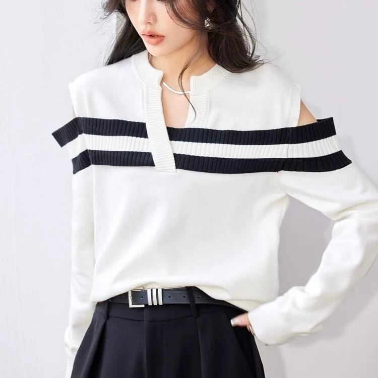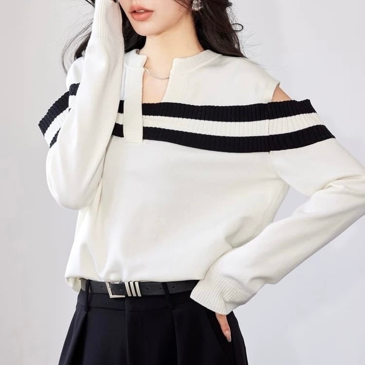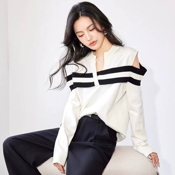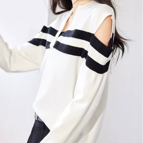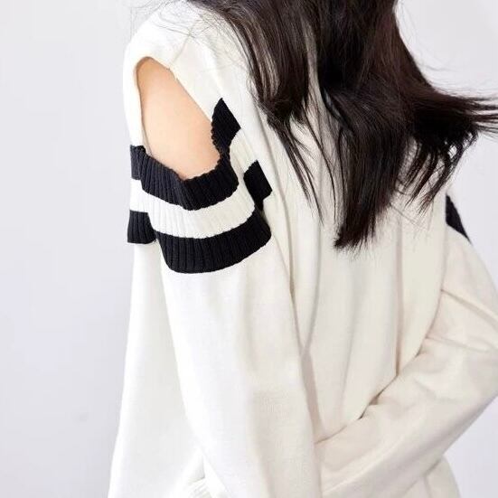 【tops】オープンショルダーストライプニット MA0305