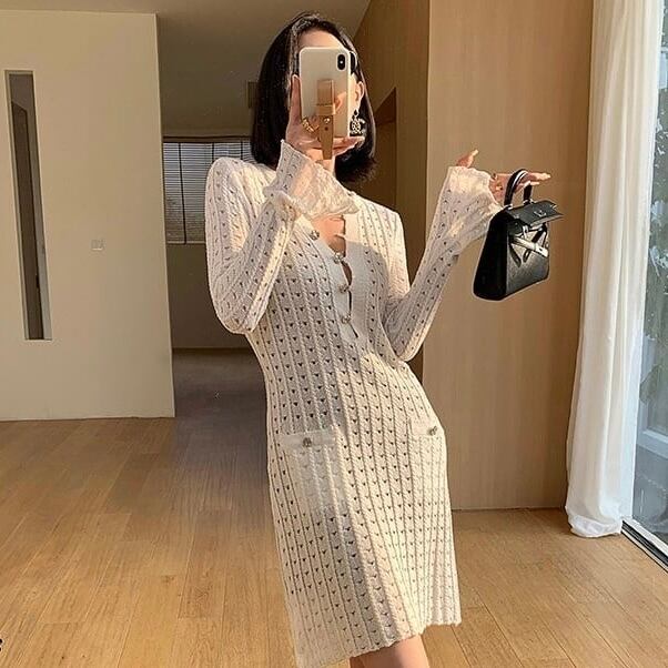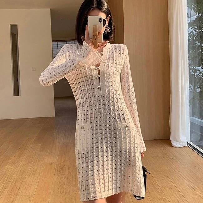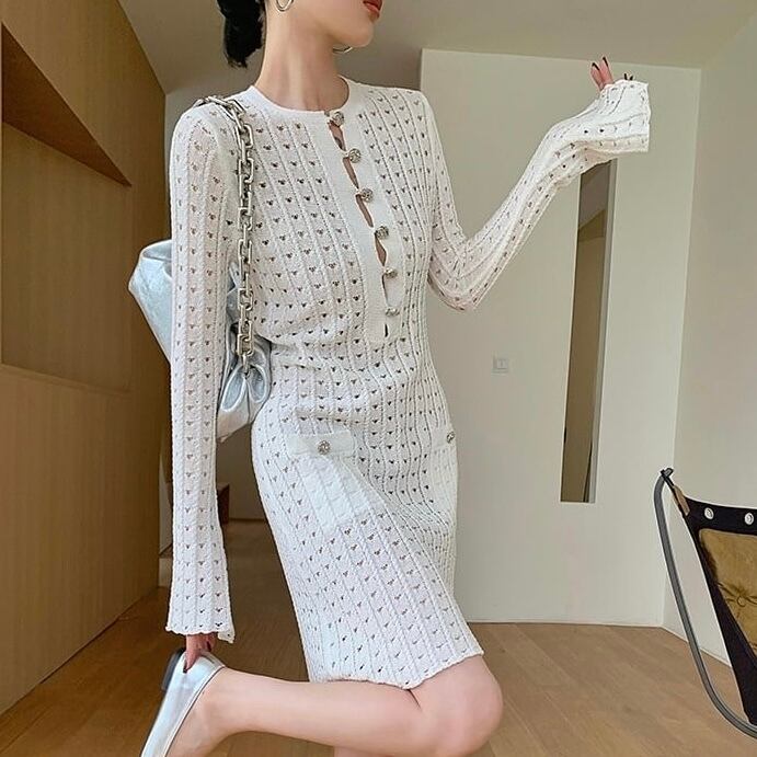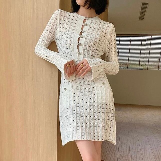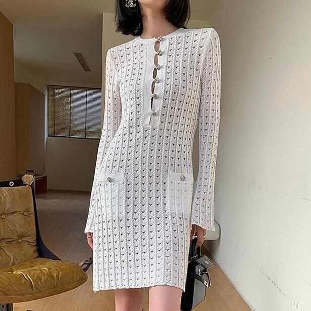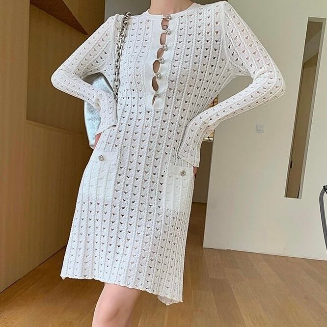 【dress】ビジューボタンミニワンピース MA0309