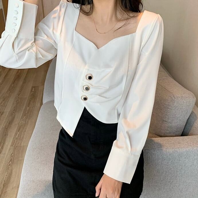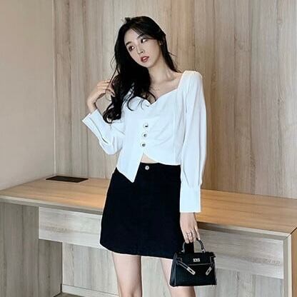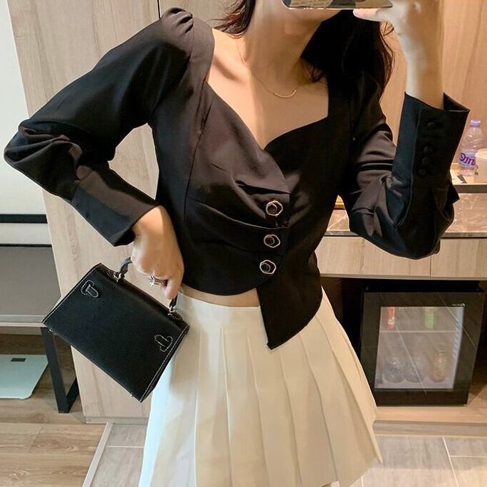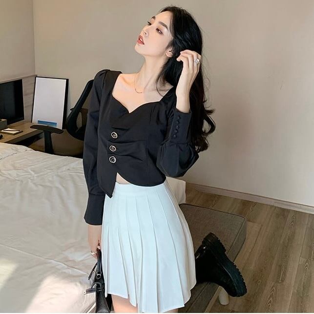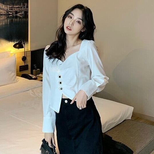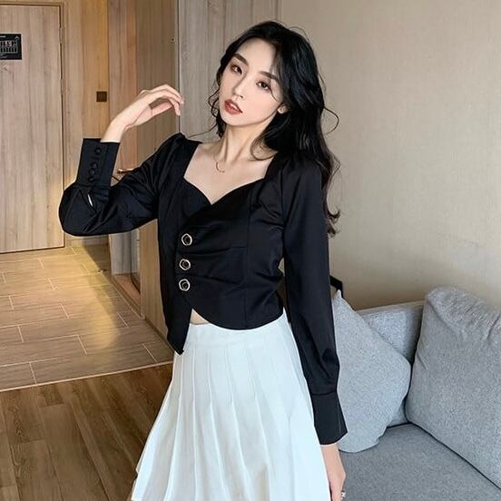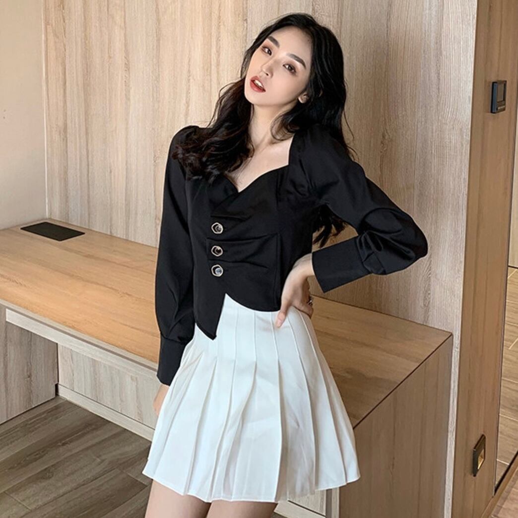 【tops】長袖アシンメトリーデザイントップス2色 MA0311