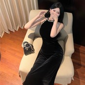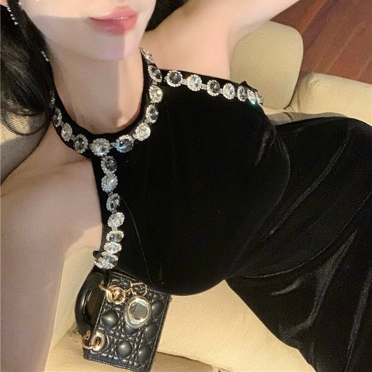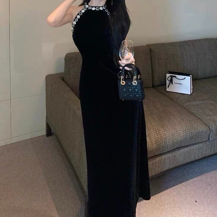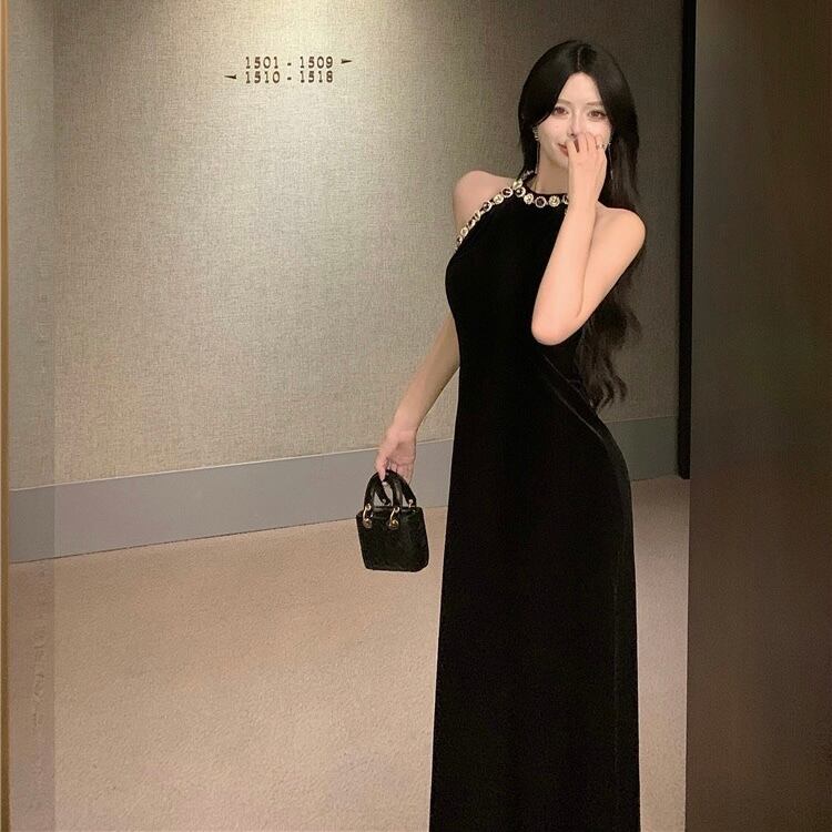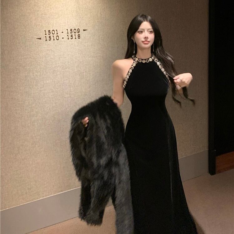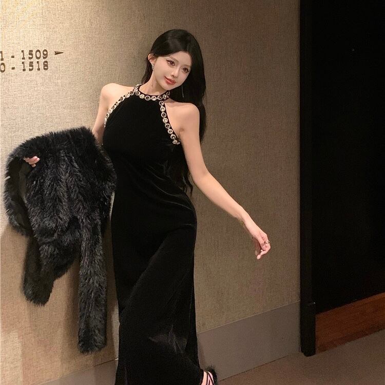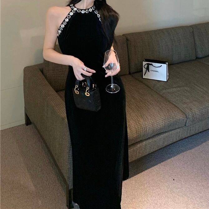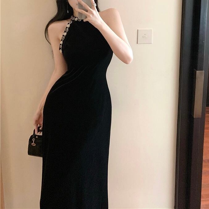 【dress】ビジュー付きホルターネックワンピース XT9283