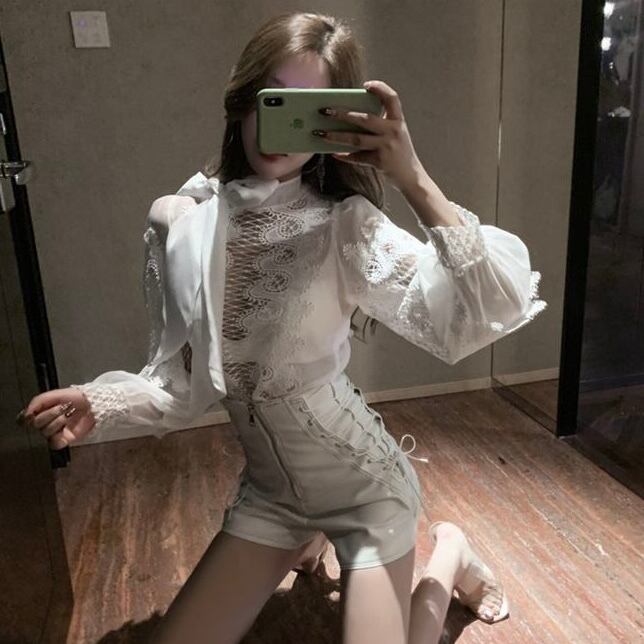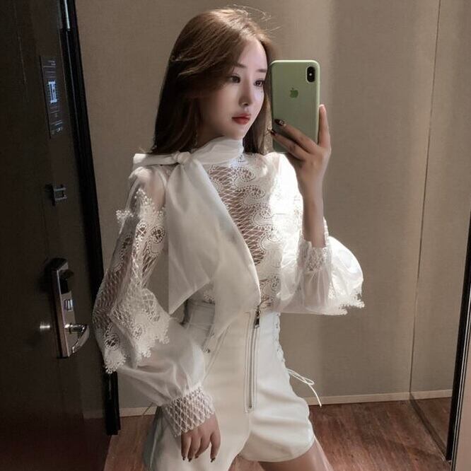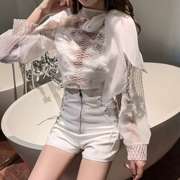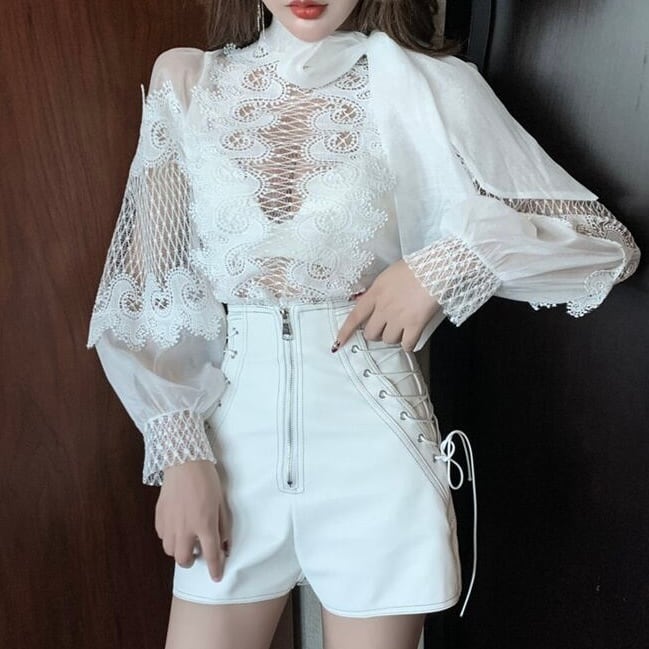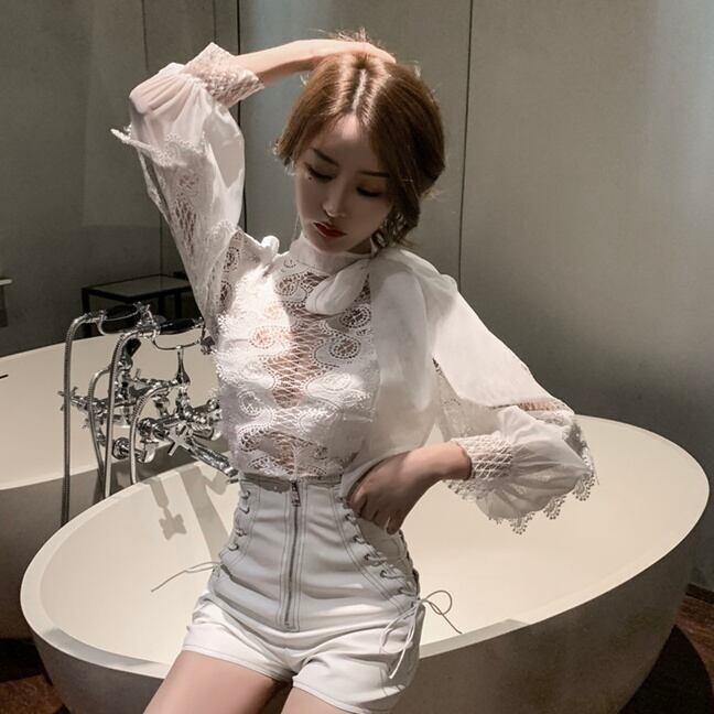 【tops】長袖シースルー切り替えトップス2色 MA0318