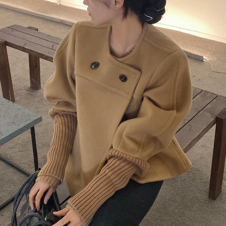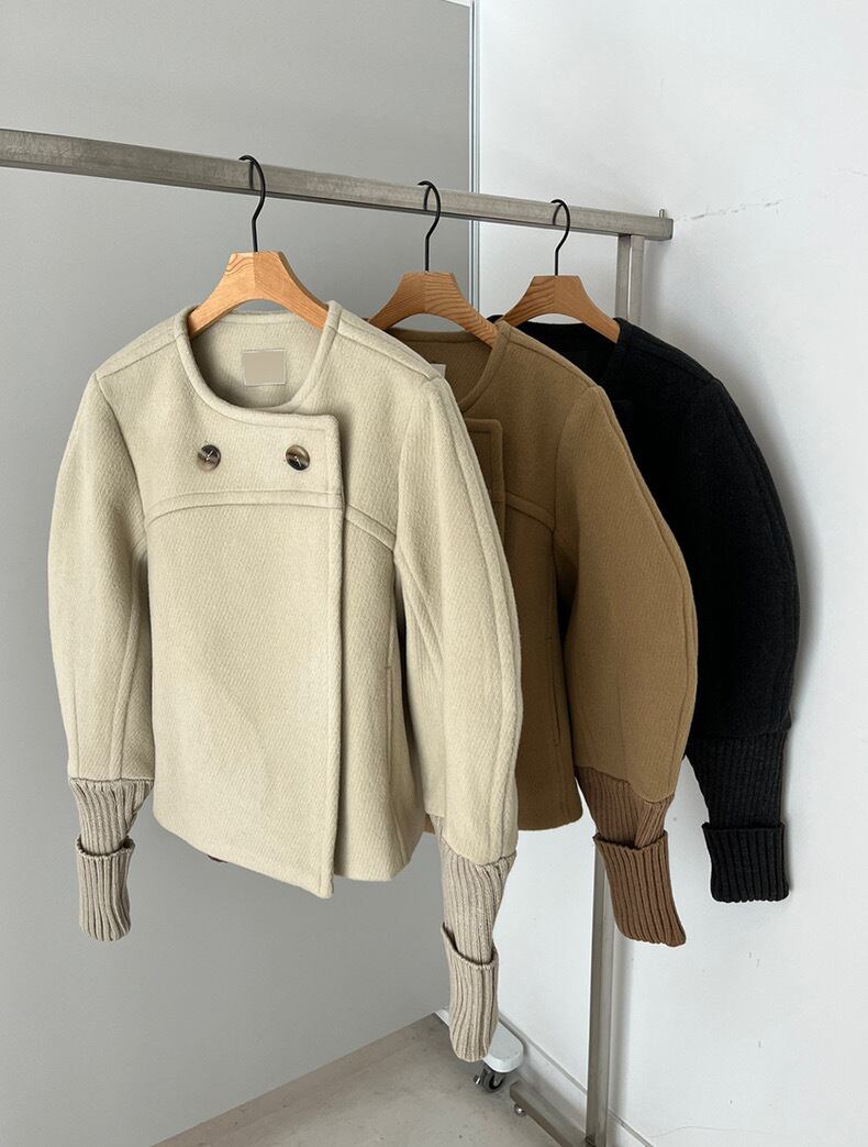 【outer】韓国系スリーブ切り替えコート3色 SY1022