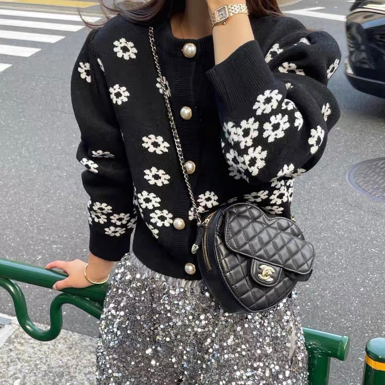 【outer】フラワーニットカーディガントップス RR1031