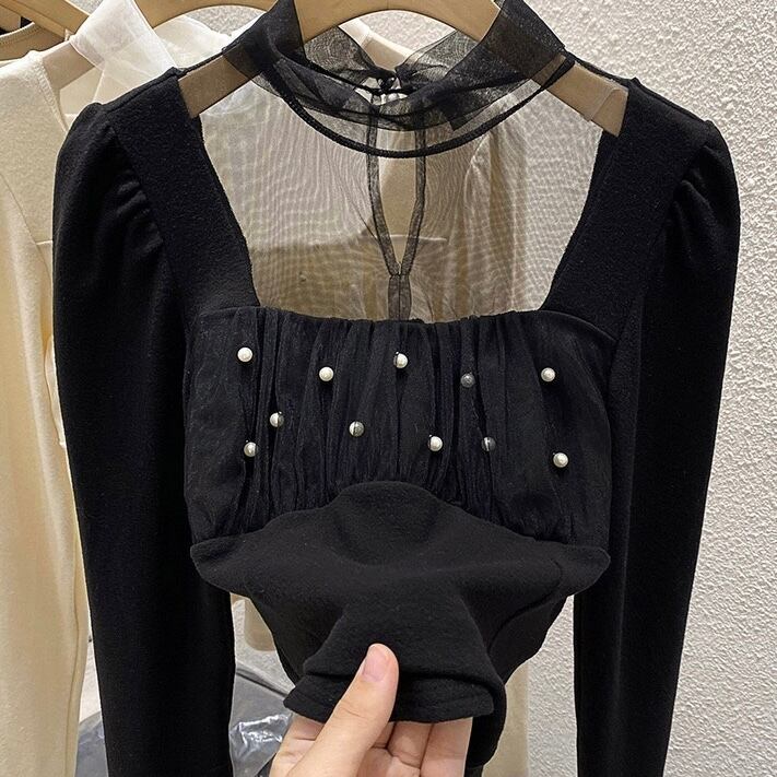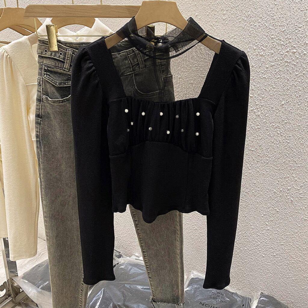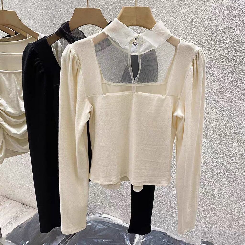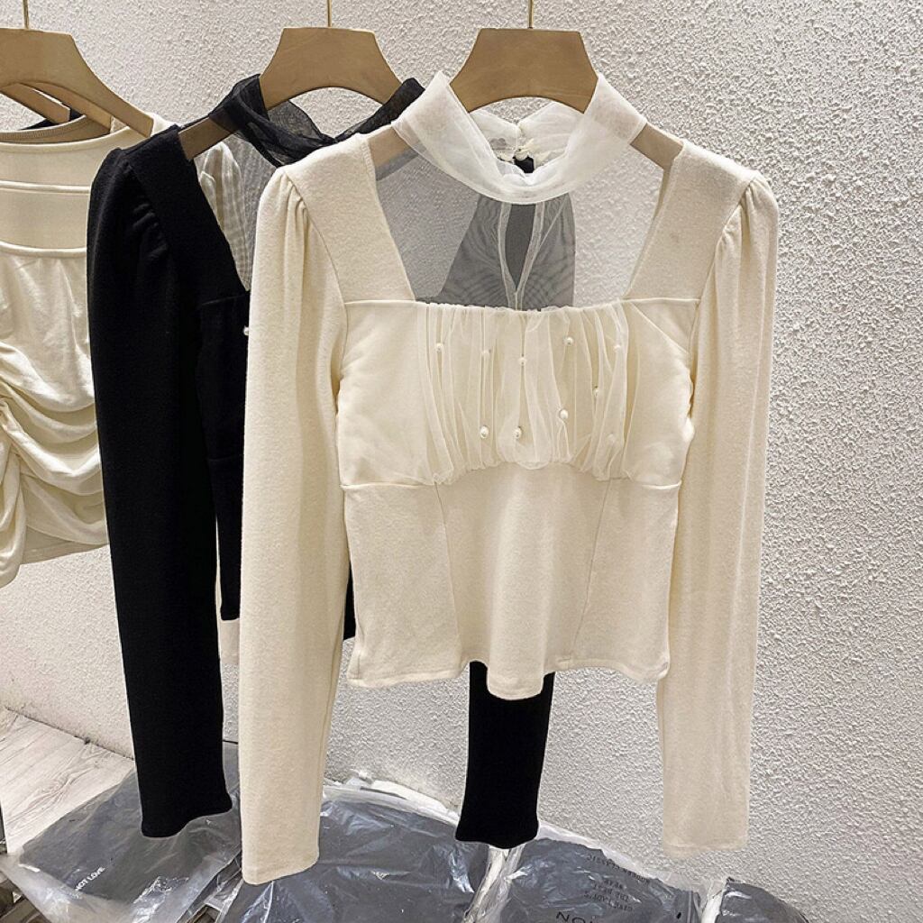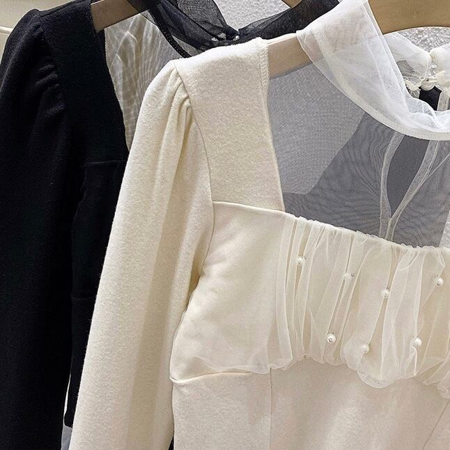 【tops】ショート丈チュール切り替え長袖トップス2色 LM1040