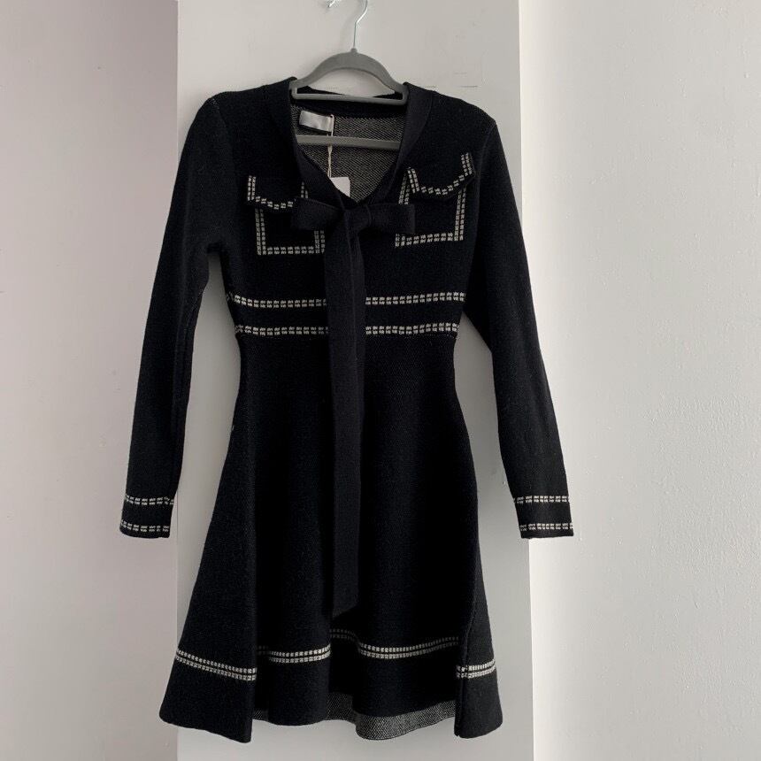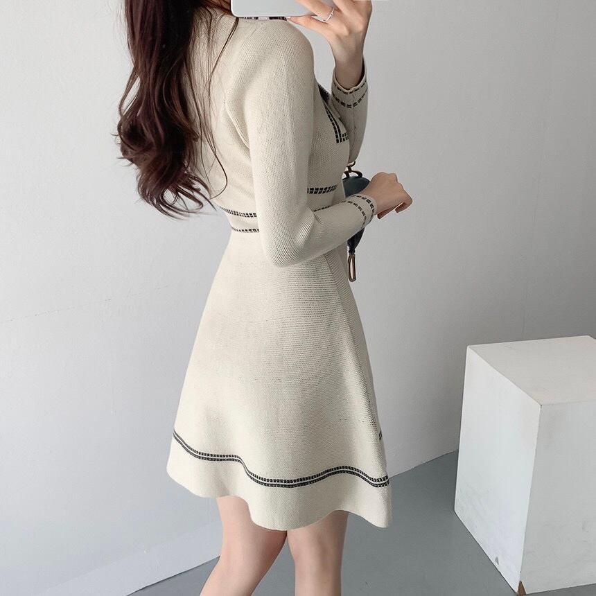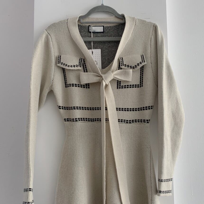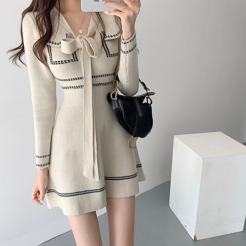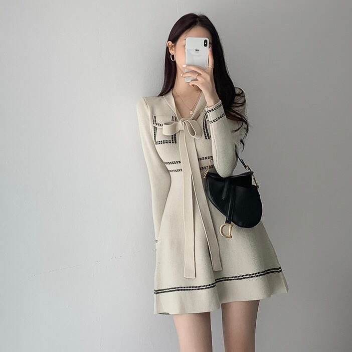 【dress】Aラインリボンニットワンピース2色 IR1042